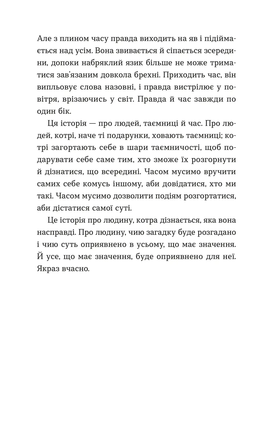 Книга Дарунок авторства Сесілії Ахерн, видана у Видавництві Старого Лева, — це новий щемкий роман, що досліджує цінність часу, людських зв'язків і переосмислення пріоритетів. Головний герой, Лу Сафферн, веде надшвидкий ритм життя: робота, наради, приватні справи — усе розписано по хвилинах. Але що станеться, коли життя зробить несподіваний поворот?