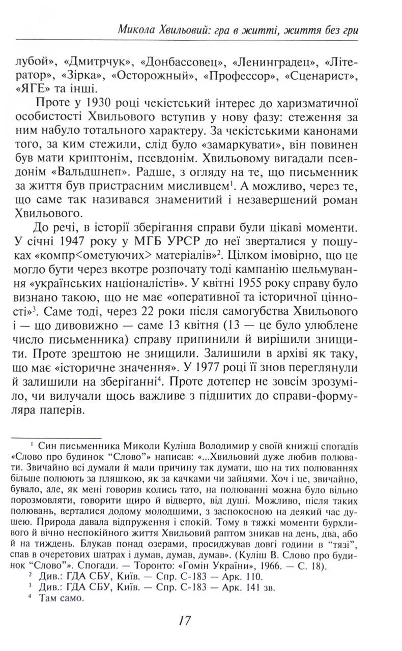 Юрій Шаповал вказує, що Миколу Хвильового вважали українським націоналістом і системно переслідували. Напруга і психоемоційне виснаження, викликані постійним стеженням і загрозою арешту, призвели до трагічного фіналу — самогубства письменника.
