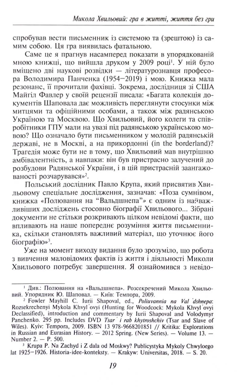 Юрій Шаповал у своєму дослідженні подає не лише художній портрет Хвильового, а й розкриває з історичної перспективи обставини, які сформували його як людину, митця, критика режиму. За допомогою вивірених архівних документів, спогадів сучасників та унікальних матеріалів, автор демонструє драму постійного зіштовхування письменника з політичним тиском більшовицької влади.