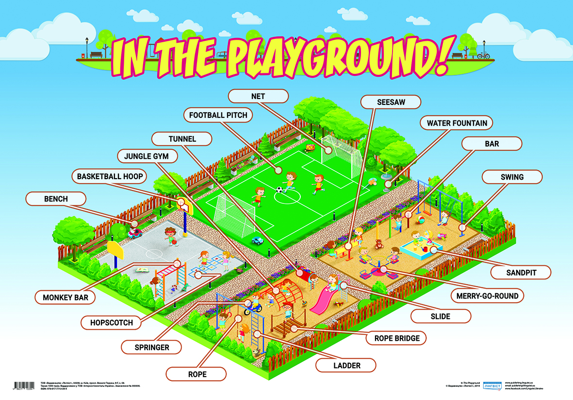 Англійський плакат "In The Playground!" з картками