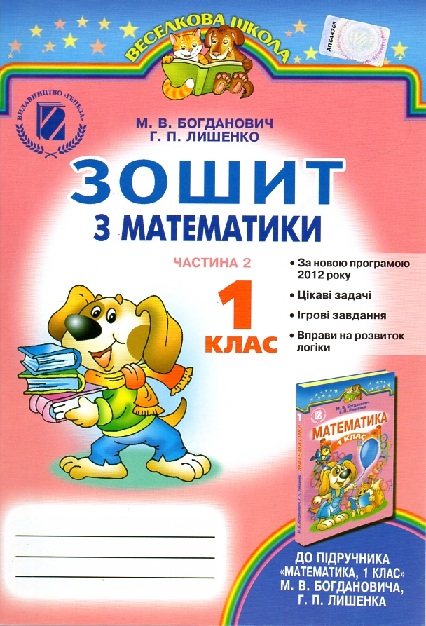 Зошит до підручника «Математика, 1 клас» (авт. М.В. Богданович, Г.П. Лишенко) призначений для узагальнення і закріплення знань з математики, формування відповідних умінь і навичок, розвитку логічного мислення першокласників.