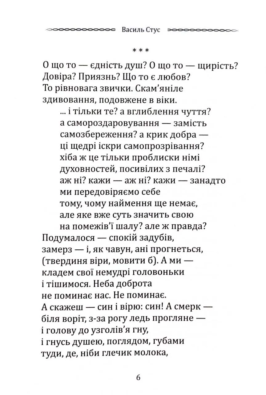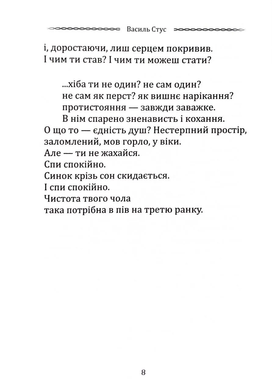Видання Вибрана поезія Василя Стуса — це не тільки мистецтво, це документ духовної сили і прагнення до правди. Книга видана у форматі, що робить її чудовим подарунком: тверда палітурка з тисненням, використання конгреву, матова ламінація. До того ж, її зручно читати завдяки компактному розміру.