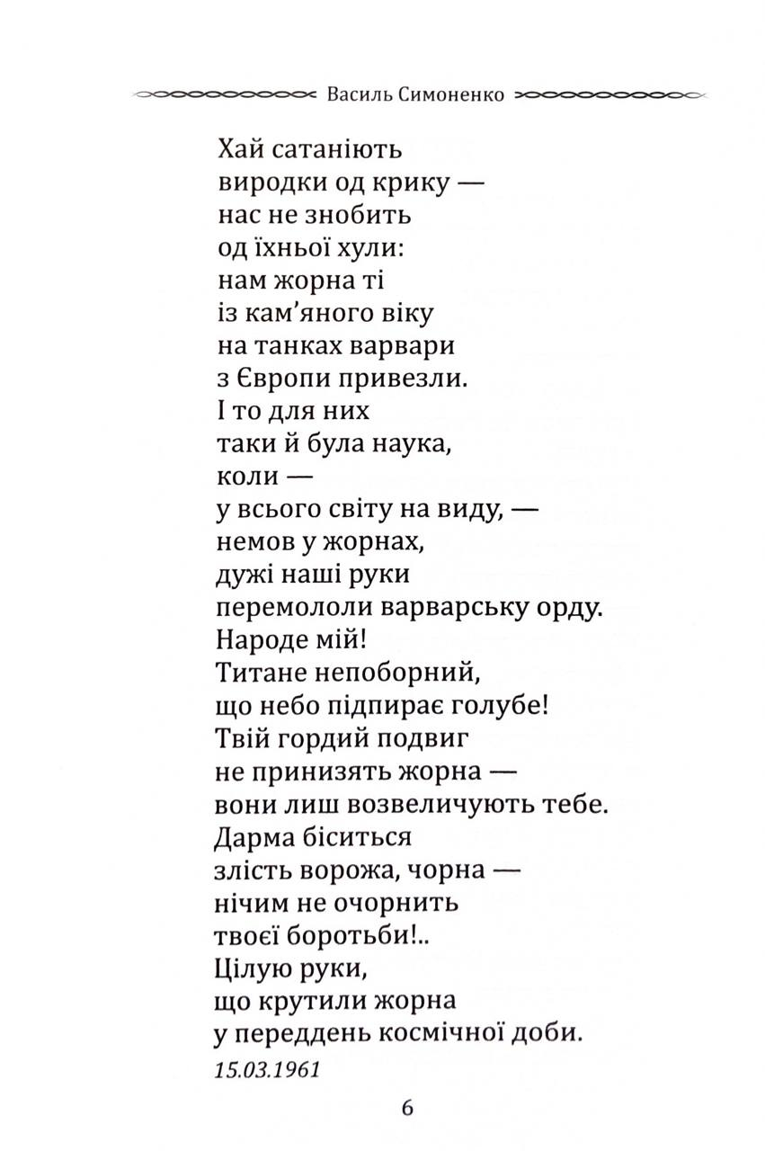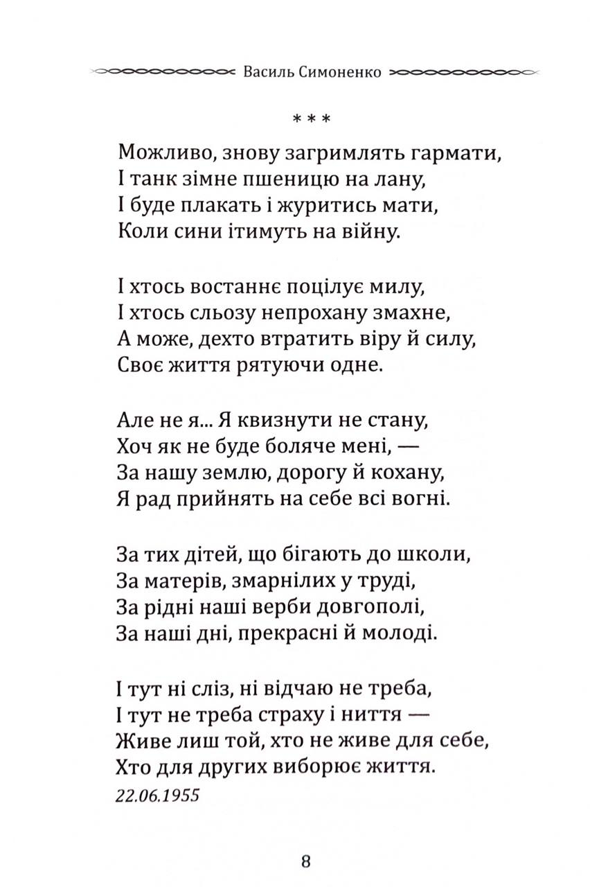 Василь Симоненко — один із найвідоміших українських поетів ХХ століття. Його поезія — щира, глибока та емоційно насичена, пронизана любов’ю до рідної землі, прагненням справедливості та мріями про краще майбутнє. Збірка Василь Симоненко. Вибрана поезія охоплює найкращі твори поета, включаючи вірші з єдиної прижиттєвої збірки «Тиша і грім» та посмертної — «Земне тяжіння».