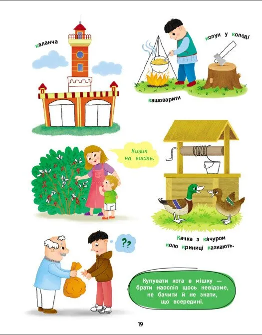Завдяки виданню малята зможуть одночасно вивчати букви, поповнювати лексичний запас та знайомитися з перлинами українського фольклору. Це ідеальний подарунок для дошкільнят на етапі підготовки до школи. Використання образних висловів допоможе дитині краще зрозуміти суть мови та навчить її говорити красиво і грамотно.