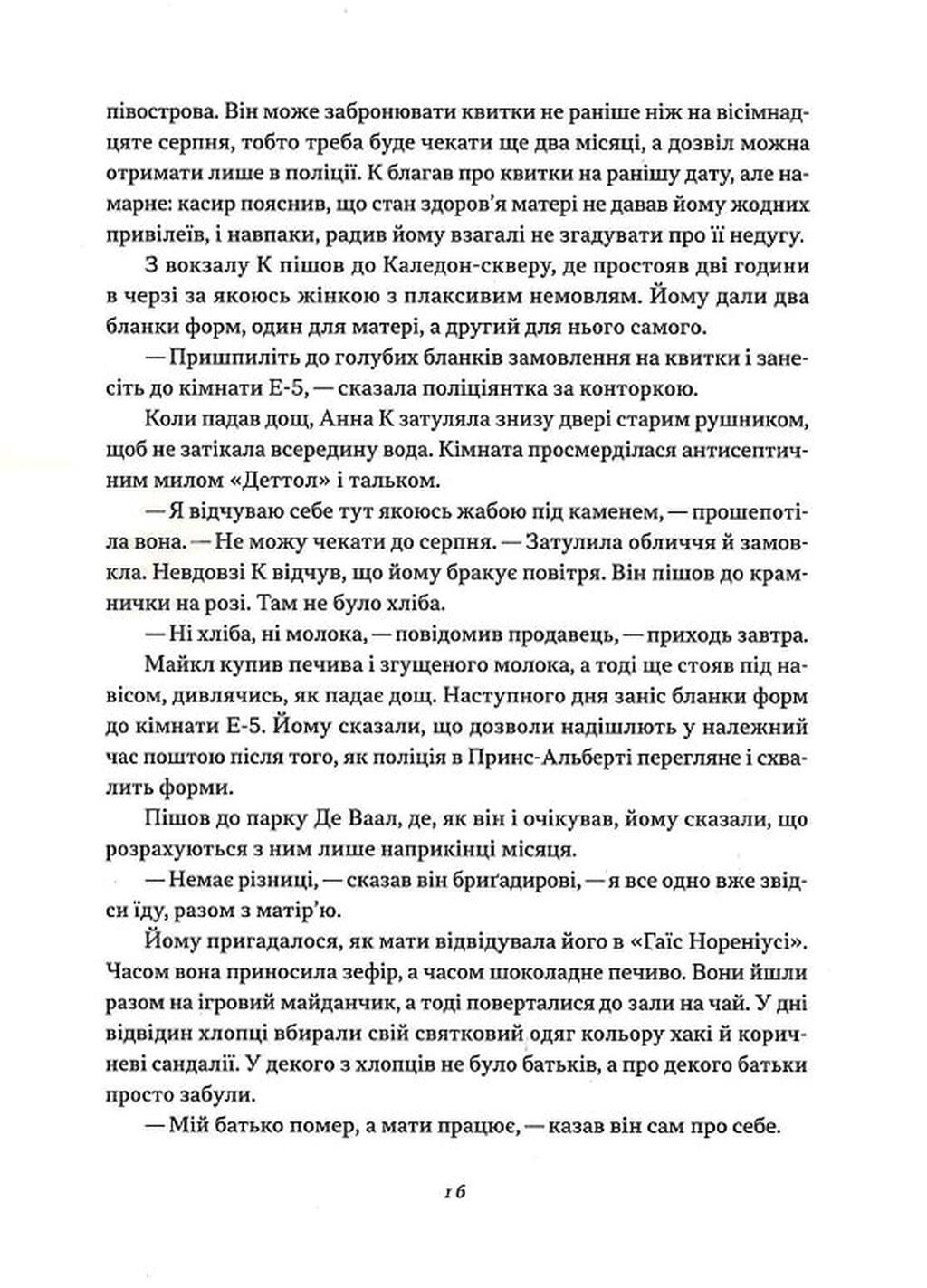 Події роману розгортаються в умовах політичної нестабільності та жорстокої боротьби за владу. На шляху Майкла та його матері — блокпости, мародери, табори для біженців. Та навіть у найтемніші моменти автор показує: навіть у зраниному світі можна зберегти гідність і людяність.