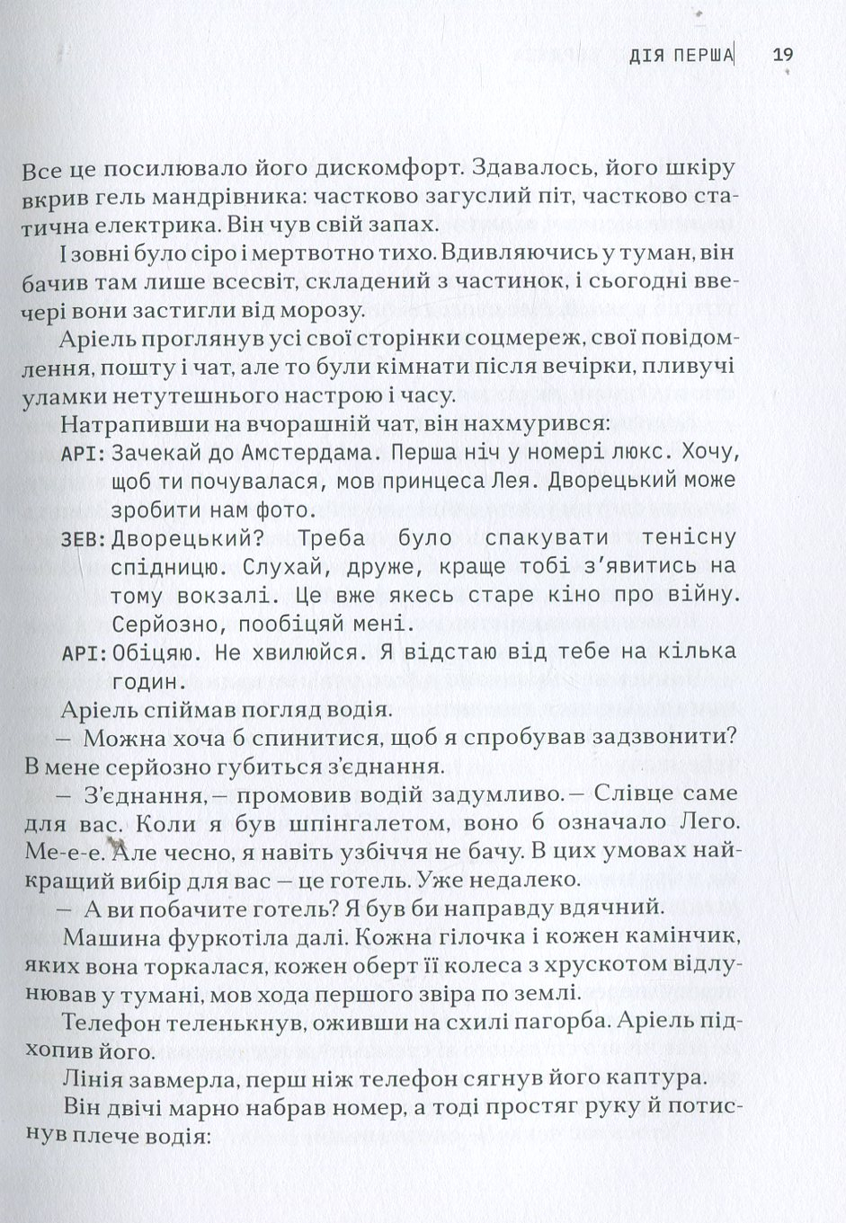 Молодий американський науковець Аріель Панек, прямує на конференцію до Амстердама, проте змушений зробити зупинку в Англії через затримку рейсу. Його тимчасовий прихисток — таємничий пансіонат, у якому мешкає дивна родина. Герой потрапляє у пастку подій, що швидко набувають лиховісного обороту. Відчуженість, темрява, густий туман і напруга, яка наростає з кожною сторінкою, створюють гнітючу атмосферу, схожу на сартріанське пекло.