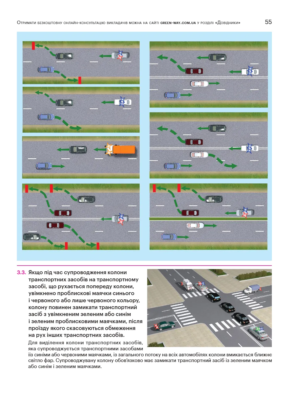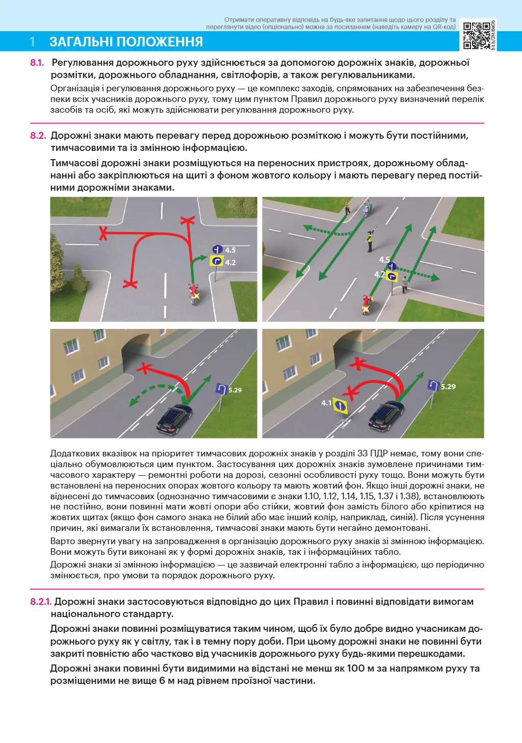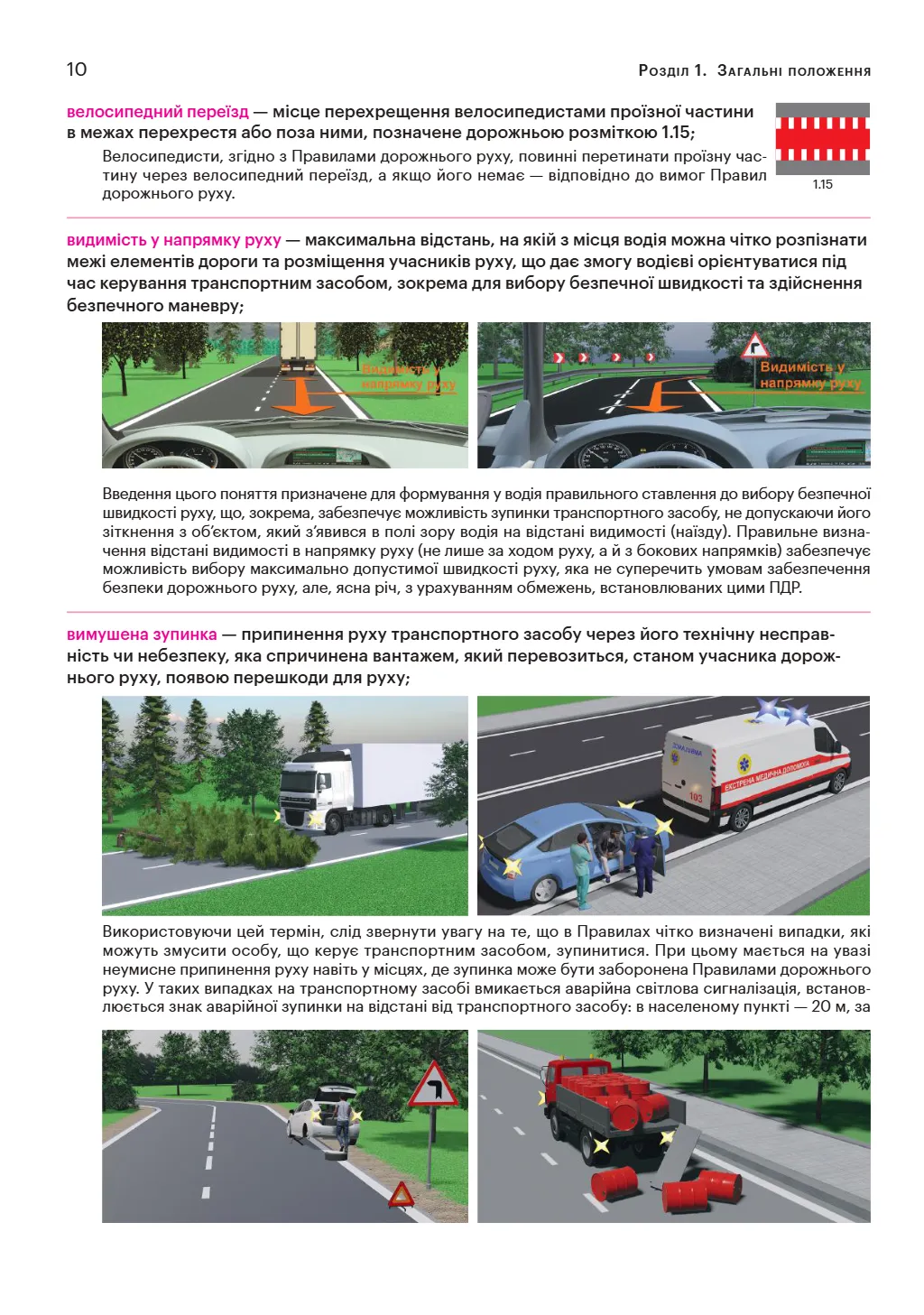 - Кольорові ілюстрації, що демонструють дорожні знаки, розмітку та ситуації на дорозі.