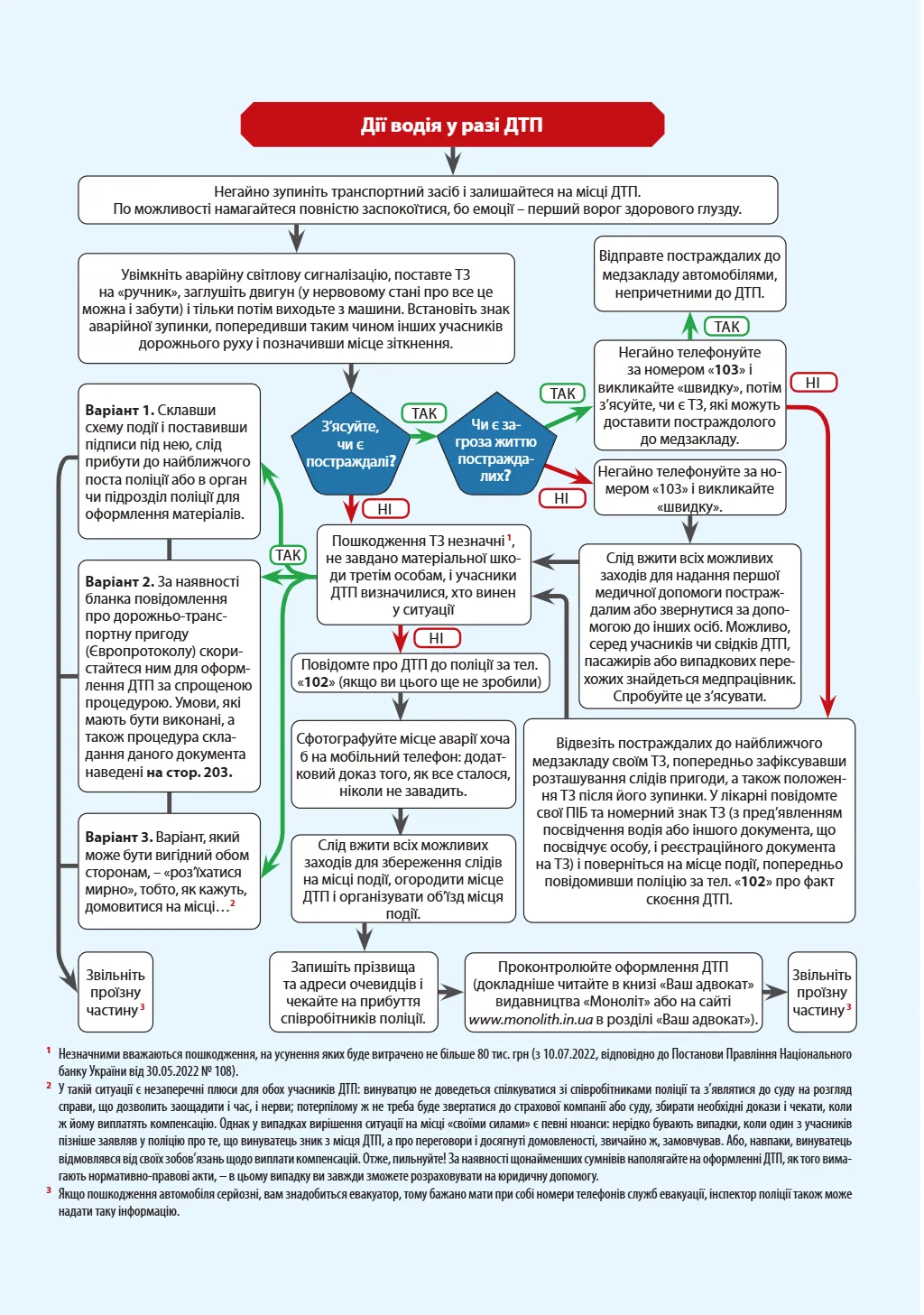 - Рекомендації щодо надання першої медичної допомоги у разі ДТП.