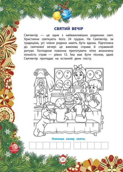 Розвивайся граючи! Адже Від Миколая ? до Різдва. Велика книга зимових розваг це - вірші, пісні, колядки, щедрівки, які знадобляться під час зимових свят та в період шкільного навчання; - розмальовки та творчі завдання, які формують художній смак; - загадки, що сприяють розвитку уяви, логіки та уваги; - завдання з наліпками незамінні для розвитку дрібної моторики; - лист до Святого Миколая, у якому дитина поділиться своїми хорошими вчинками та попросить подарунок до свята. На кожній сторінці різні завдання, аби дитина змінювала вид діяльності й не нудьгувала. Усе, щоб подарувати маленькому читачеві чарівну казку й допомогти провести дозвілля весело та з користю.