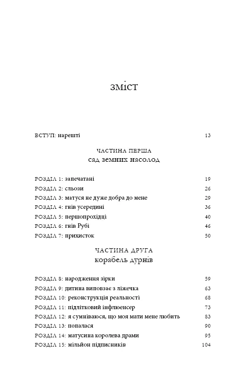 На сторінках книги Шарі Франк ділиться спогадами про своє дитинство під контролем матері — блогерки Рубі, яка керувала популярним YouTube-каналом 8 Passengers. Понад 2,5 мільйона підписників бачили, здавалося б, ідеальне життя родини. Але за лаштунками відео панувала сувора дисципліна, тиск і контроль, що доходили до жорстокості. Історія Шарі — це не лише викриття, а й подорож до розуміння себе та визволення з-під тотального батьківського впливу.