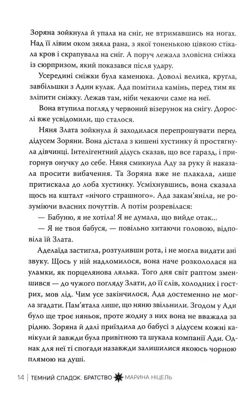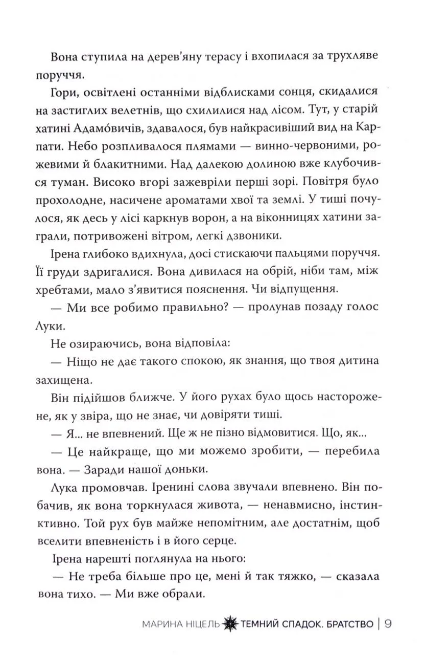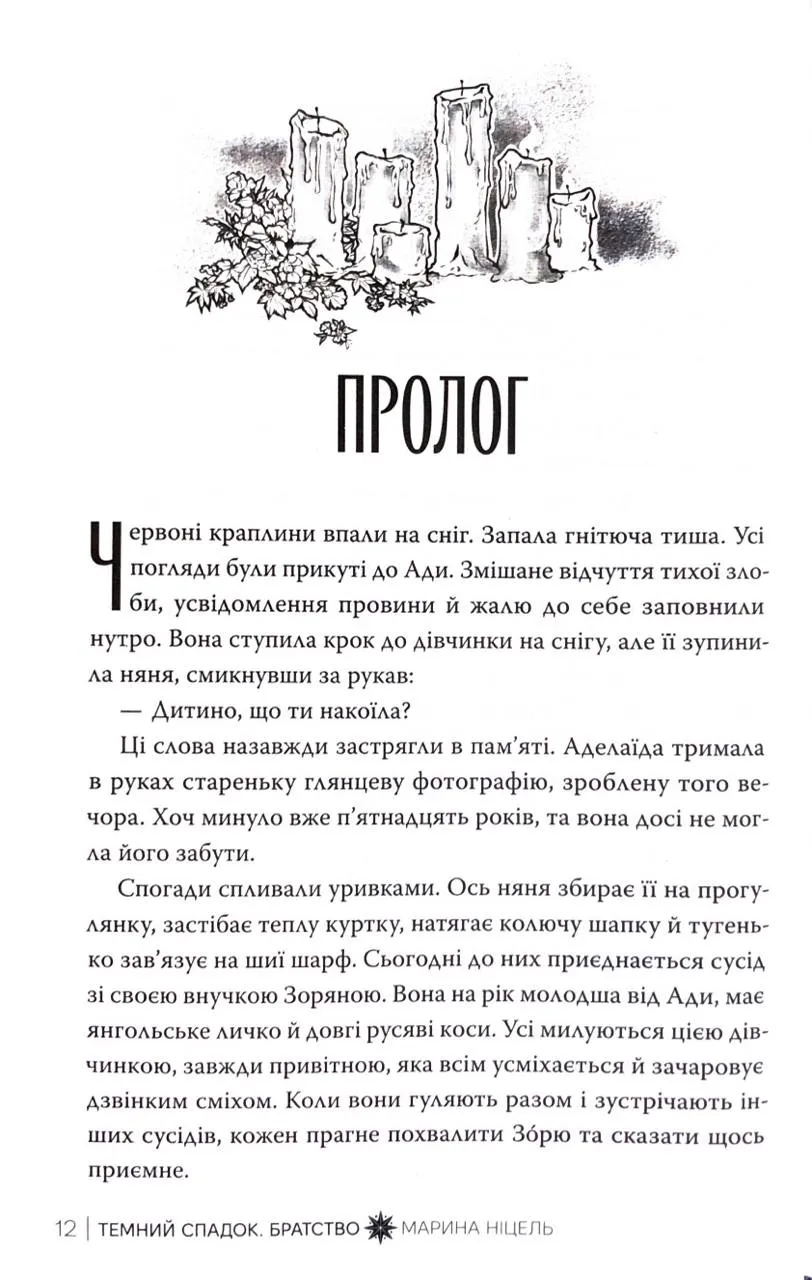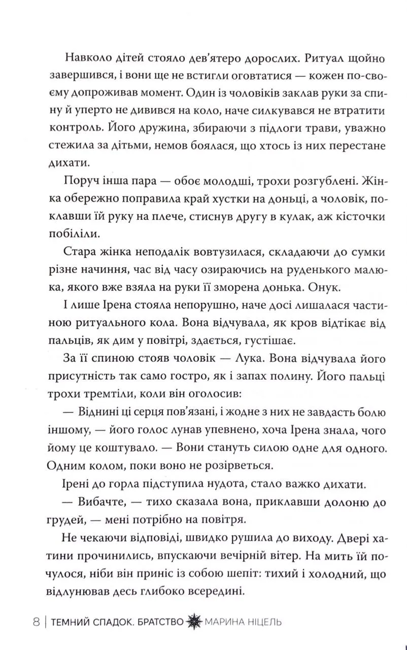 Темний спадок. Братство. Книга 1 — це перша частина нового циклу від української авторки Марини Ніцель, яка вже встигла завоювати прихильність читачів по всій країні.