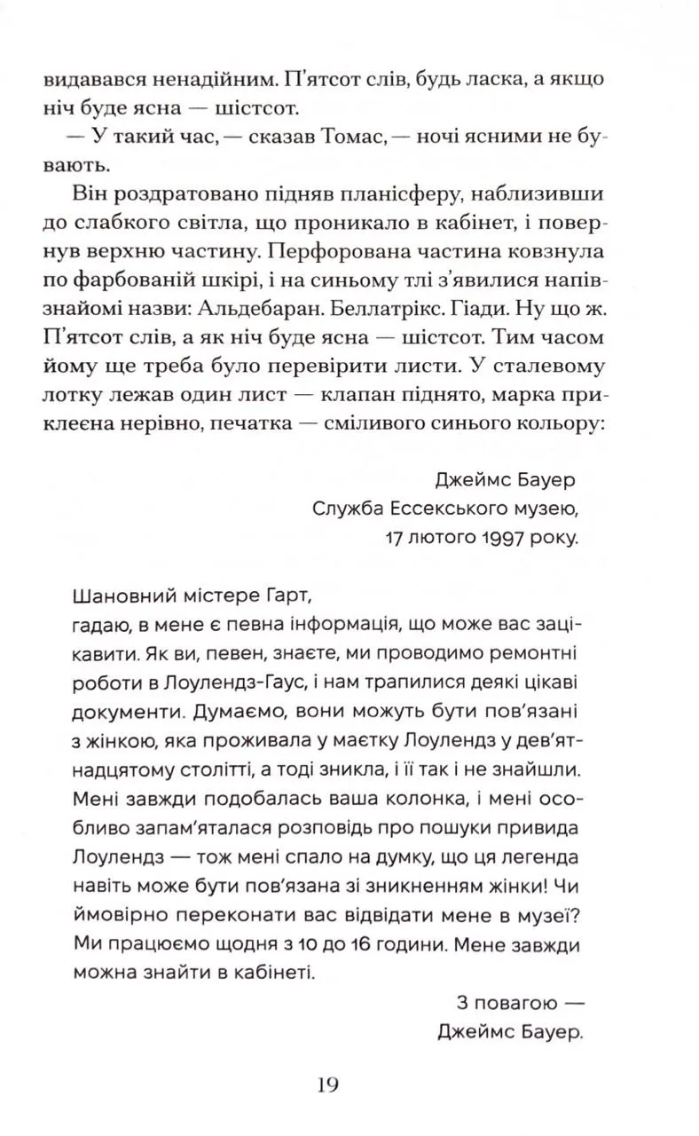 Томас занурюється у дослідження зниклої астрономки XIX століття, привид якої, за легендами, мешкає у старовинному маєтку. Одночасно Ґрейс переживає своє перше кохання і вирішує покинути Олдлі. Їхні життєві шляхи розходяться, але пам’ять і почуття не зникають. Авторка пропонує читачам глибоку історію про те, як ми переосмислюємо любов, вірність і своє покликання у часовому потоці.