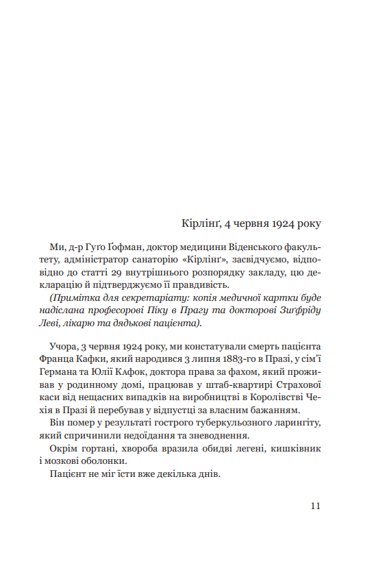У цьому романі Лоран Сексік по-новому досліджує життя і творчість Франца Кафки. Автор «Останніх днів Стефана Цвейґа» та «Справи Едуарда Айнштайна» знову поєднує з емоційністю й ерудицією велику історію та трагедію життів, сформованих відбитком велетня. Лоран Сексік — лікар, письменник і драматург. Його сценічна адаптація «Учорашнього світу» Стефана Цвейґа мала великий успіх. Він є автором серіалу Une enfance d’ecrivain на французькому каналі «Інтер». А книжки Лорана Сексіка перекладені багатьма мовами світу.