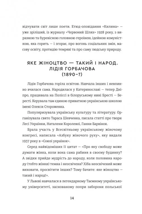 Це Христя Алчевська, Лідія Горбачова, Наталя Романович-Ткаченко та Харитя Кононенко — авторки, які писали у час, коли світ довкола них розпадався й конструювався наново. Їхні твори — це портрети сучасниць, кожна з яких проходить власний шлях змін, самоусвідомлення й боротьби не лише із зовнішніми подіями, а й із внутрішніми потрясіннями.