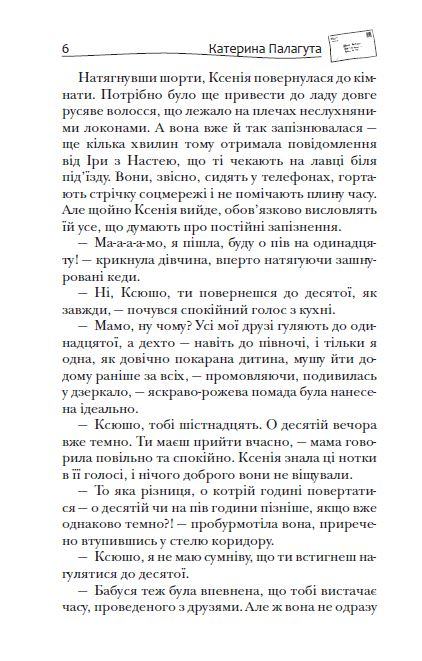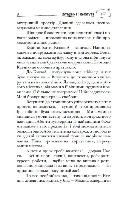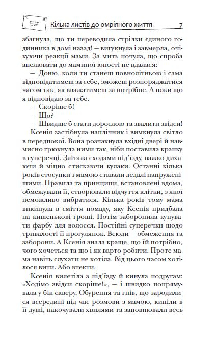 Книга Кілька листів до омріяного життя авторки Катерини Палагути — це глибока емоційна історія про пошуки себе, дорослішання та складні стосунки з близькими. Головна героїня роману, Ксенія, проходить шлях самопізнання, що відгукується кожному читачеві. Вона — звичайна дівчина зі звичайного міста, яка відкриває незвичайну істину: справжня свобода починається з прийняття себе.