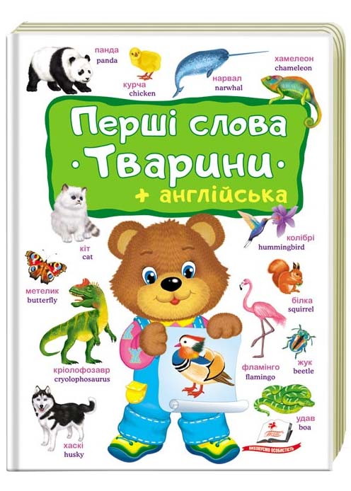 Перші слова. Тварини + англійська – це яскрава пізнавальна книга для наймолодших читачів, яка допоможе дітям вивчити назви тварин українською та англійською мовами. У книзі представлено декілька тематичних розділів: