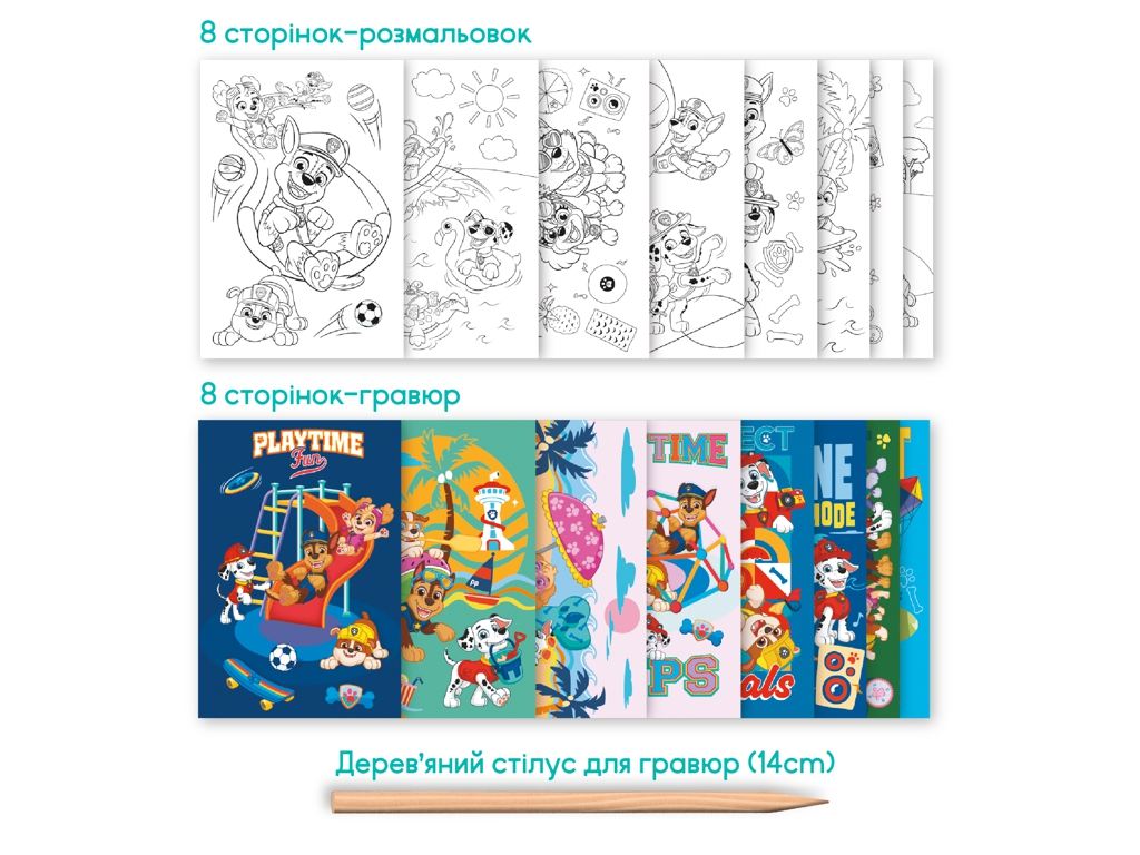 Творчі набори з розмальовками та гравюрами допомагають розвивати у дітей художні навички, увагу до деталей, дрібну моторику та уяву. Діти можуть не лише розфарбовувати зображення, а й використовувати гравюри — спеціальні сторінки, на яких за допомогою дерев’яного стілусу відкриваються яскраві лінії та малюнки під чорним покриттям, що додає ще більше захоплення процесу творчості.