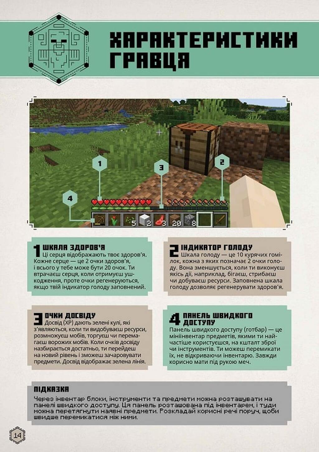 У цьому виданні зібрано оновлені поради з виживання та дослідження світу Minecraft — від пошуку корисних ресурсів до створення надійних інструментів і захисних обладунків. Автор ділиться рекомендаціями від самих розробників гри, які допоможуть максимально ефективно використовувати ігрові можливості.