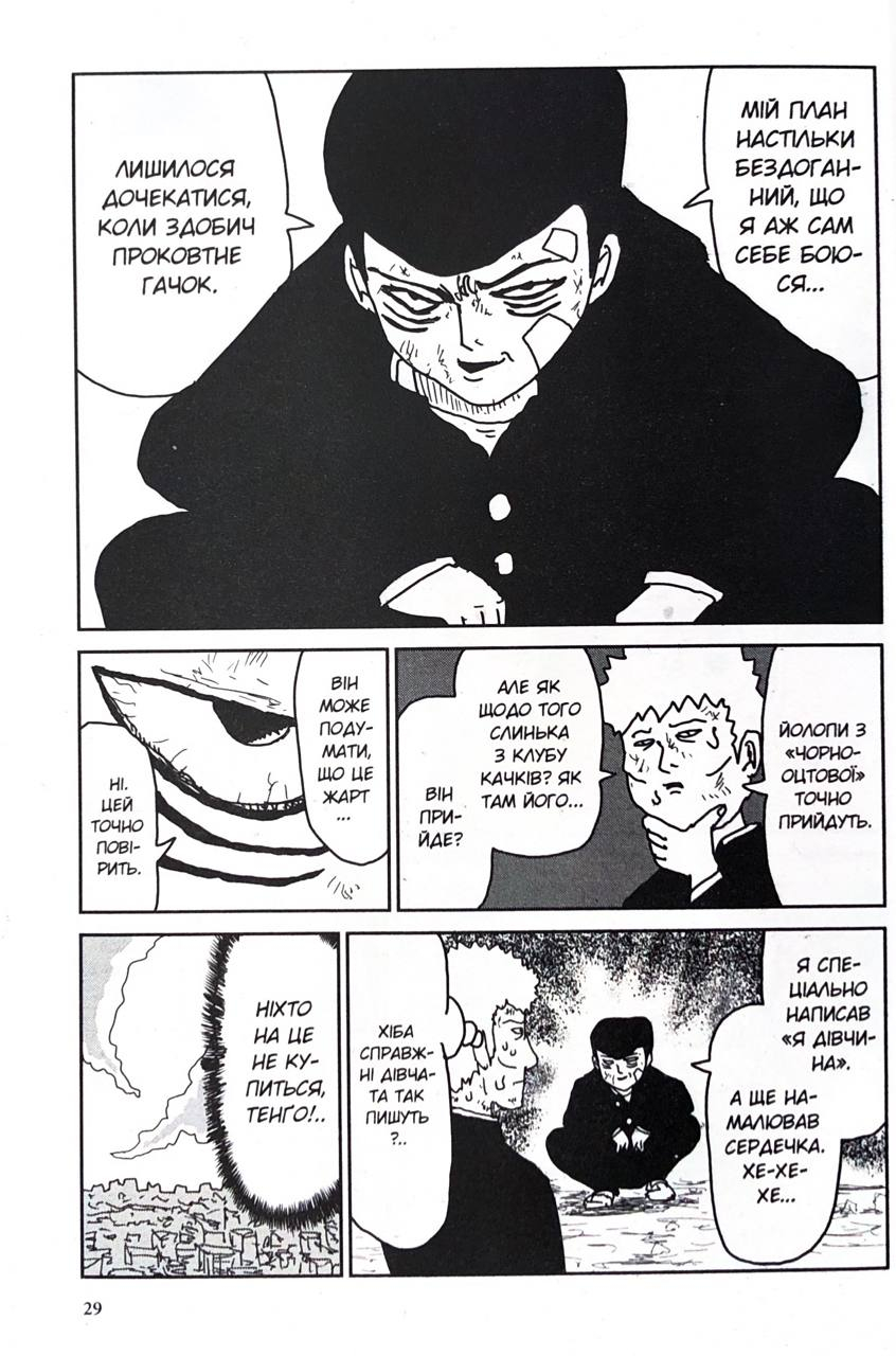 МОБ ПСИХО 100. Том 2 від One — історія про підлітка Шіґео, який хоч і сором’язливий, але приховує неймовірну екстрасенсорну силу. Поки він намагається вести звичайне життя, шкільний клуб вдосконалення тіла втягуює його в небезпечну змову.