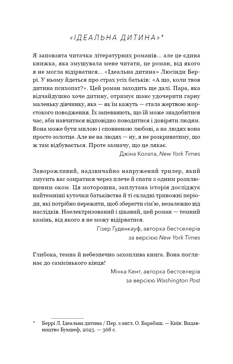 Люсінда Беррі, знана як експертка у сфері дитячої психології, дарує читачам ще одну глибоко емоційну та тривожну історію про дружбу, довіру та таємниці під фасадом благополуччя.