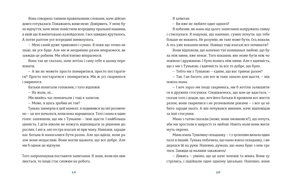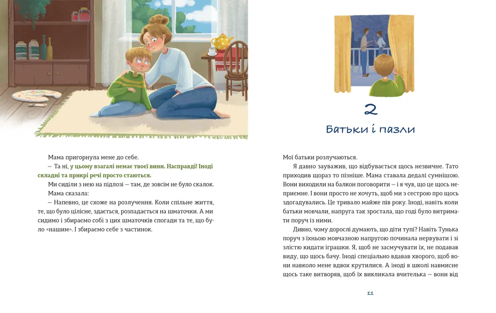 Нова книжка відомої української дитячої психологині Світлани Ройз торкається серйозної і непростої теми розлучення. Коли розлучаються батьки, світ дитини зазнає кардинальних змін, ніщо вже не буде таким, як раніше. Сім’ї, у якій звикла жити дитина, де поруч із нею завжди є обоє батьків, — також більше немає. Це справді кризова ситуація для дітей і батьків, і, звісно, розумні та чулі батьки можуть знайти вихід із неї, допомігши дітям здолати виклики, пов’язані з цією подією. Дуже часто допомогти може довірлива розмова. А якщо складно її почати — ця книжка стане в пригоді і дорослим, і дітям, які іноді можуть шукати причину розлучення батьків у собі і відчувати провину та відповідальність.