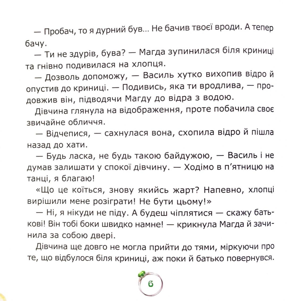 Смарагдова каблучка — це казка, що вчить любити себе справжнього й пам’ятати: жодні чари не замінять щирості та доброти.