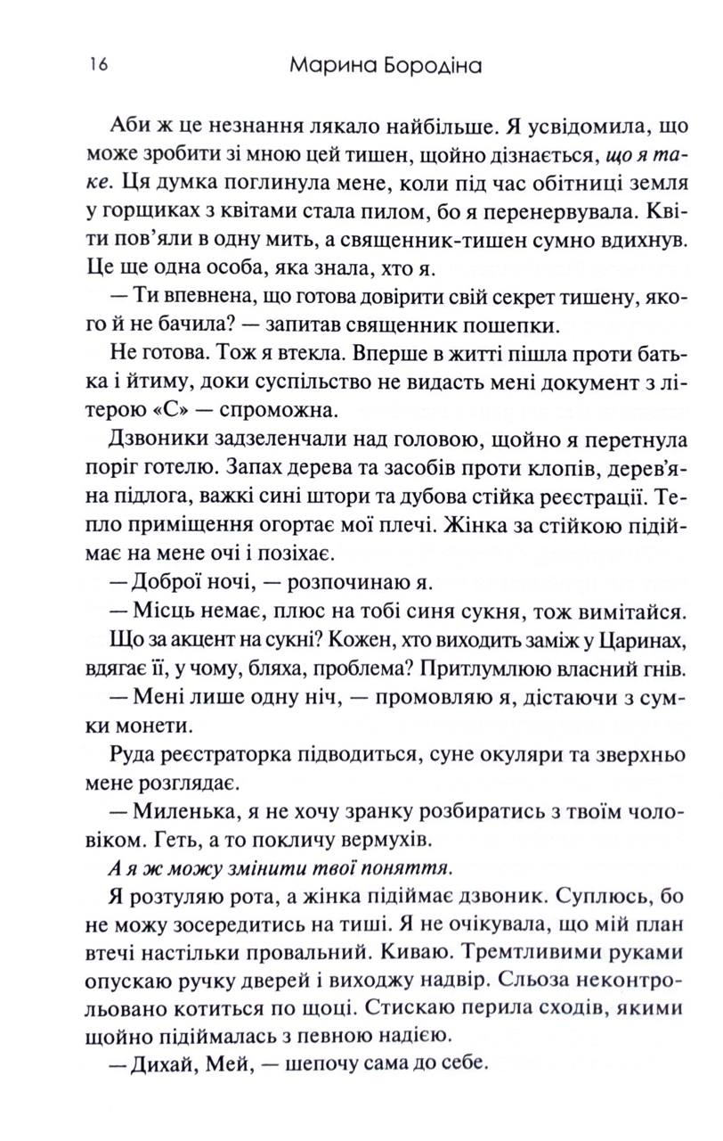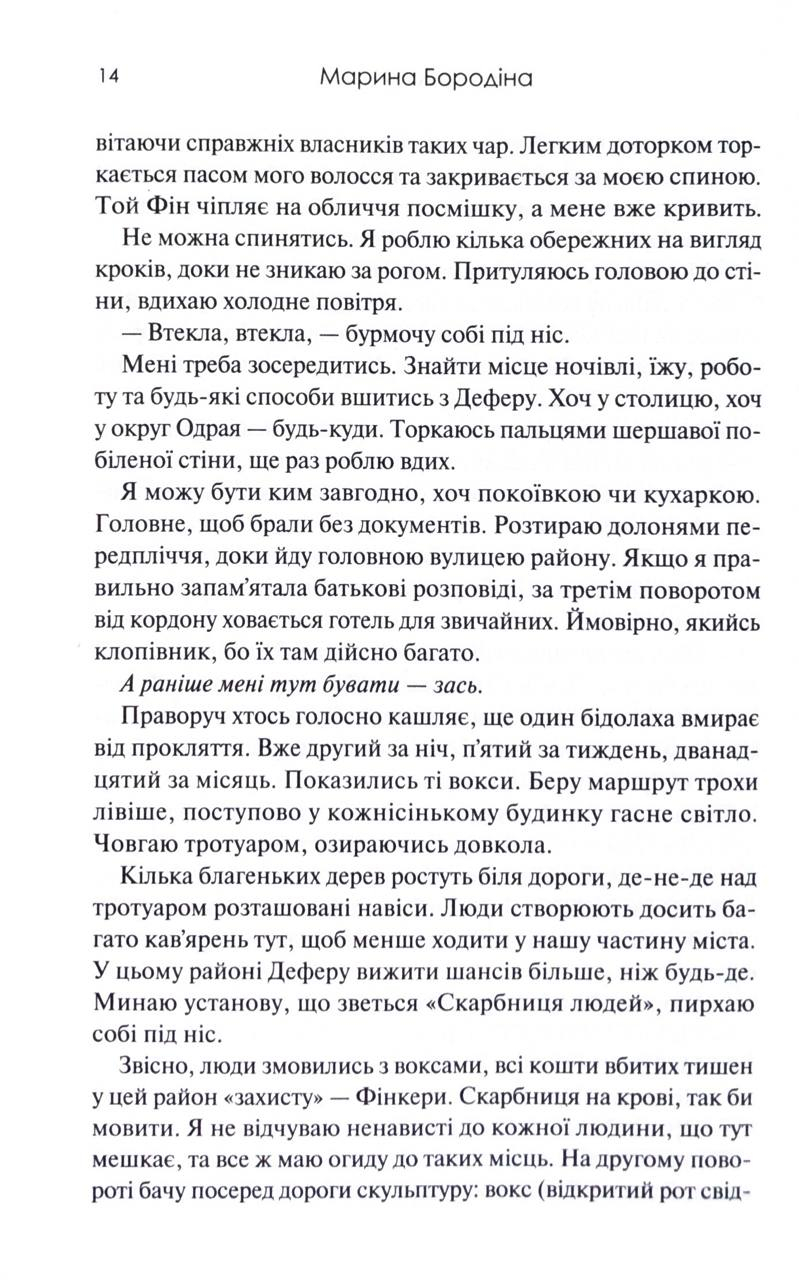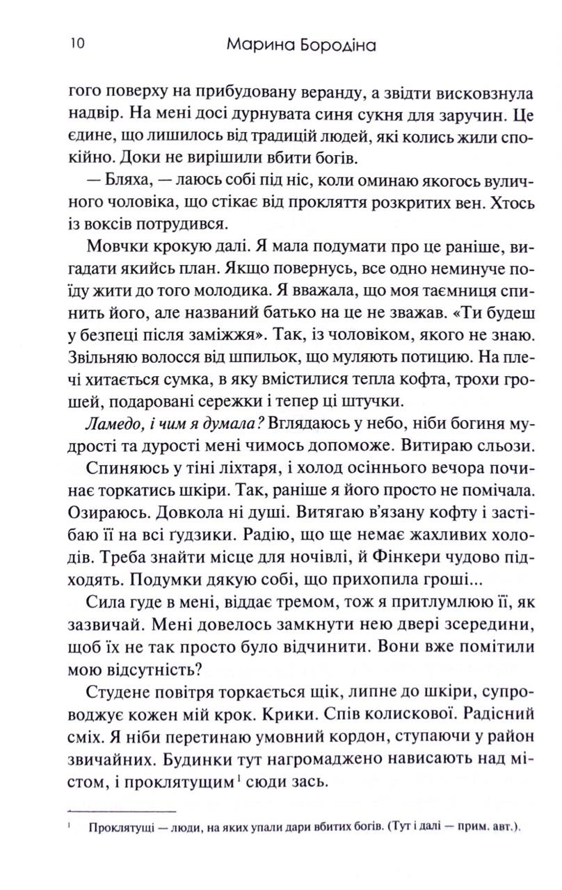 Марина Бородіна — сучасна українська авторка, яка працює у жанрі фантастики та фентезі. У своїх романах вона поєднує складні моральні вибори, сильних персонажів і темні, продумані світи, де магія завжди має свою ціну.