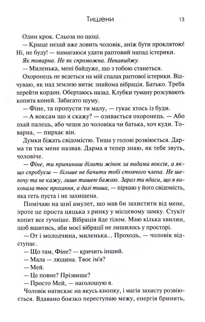 Тишени від Марини Бородіної — напружене фентезі про світ, у якому люди кинули виклик богам і заплатили за це страшну ціну. Роман поєднує магію стихій, заборонене кохання та боротьбу за право бути собою.