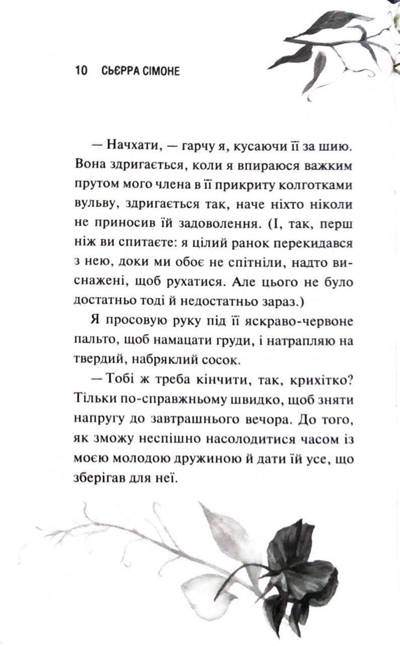 Сьєрра Сімоне — сучасна американська письменниця, відома своїми романтичними й еротичними серіями. Вона пише захопливі історії про кохання, стосунки та внутрішню боротьбу героїв, поєднуючи пристрасні сюжети з глибокими емоційними переживаннями.