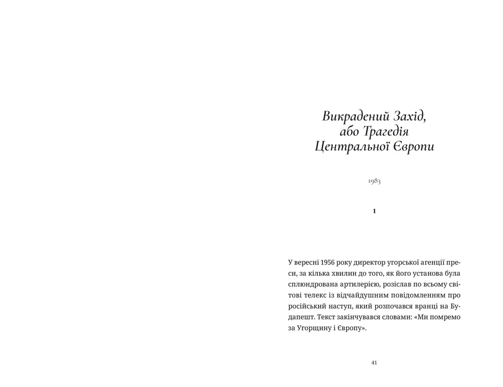 «Викрадений Захід, або Трагедія Центральної Європи» Мілана Кундери — це знаковий есей, що став інтелектуальним маніфестом. Цей текст програмний і пророчий: він не лише поставив питання про ідентичність Центральної Європи, а й на десятиліття вперед задав етичний і культурний ракурс для розмови про розширення Європи, сенс інтеграції та гідність малих мов і націй. Написаний 1983 року, він проголошує: культура, а не географія чи політика, визначає приналежність до Заходу. Чехи, угорці, поляки — не сателіти Сходу, а живі голоси європейської цивілізації, тимчасово викрадені з її тіла.