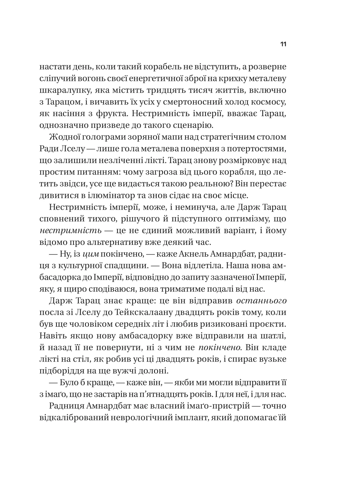 Відтак Магіт мусить з’ясувати, що сталося насправді, захистити себе, свою незалежну станцію Лсел та інші маленькі станції у їхньому секторі від експансії Тейкскалаану. Того Тейкскалаану, мову й літературу якого вона здавна обожнює ксенофільною любов’ю… Попереду на неї чекає небезпечна гра, оповита технологічними таємницями, за крок до знищення її колиски, її домівки.
