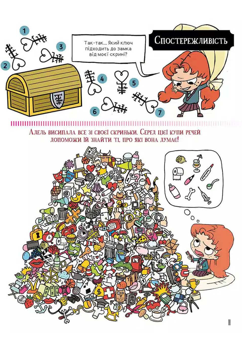 Читачів чекає понад 100 ігор, лабіринтів, завдань і загадок, які потрібно розв’язувати разом із Крутою Адель. Кожна сторінка — це новий сюрприз, хитрий жарт або підступне випробування.