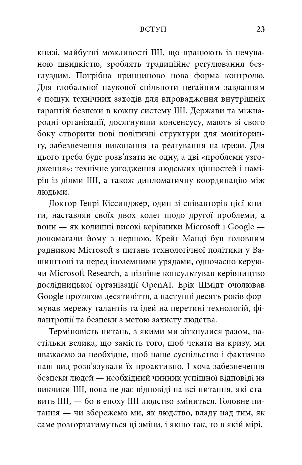 Ця книга — остання велика праця державного діяча та дипломата Генрі Кіссінджера, написана у співпраці з двома провідними фахівцями світу технологій — Еріком Шмідтом і Крейгом Манді. Автори прагнуть озброїти нас знаннями, необхідними для того, щоб скористатися перевагами штучного інтелекту й уникнути темних пасток, які він може створити.