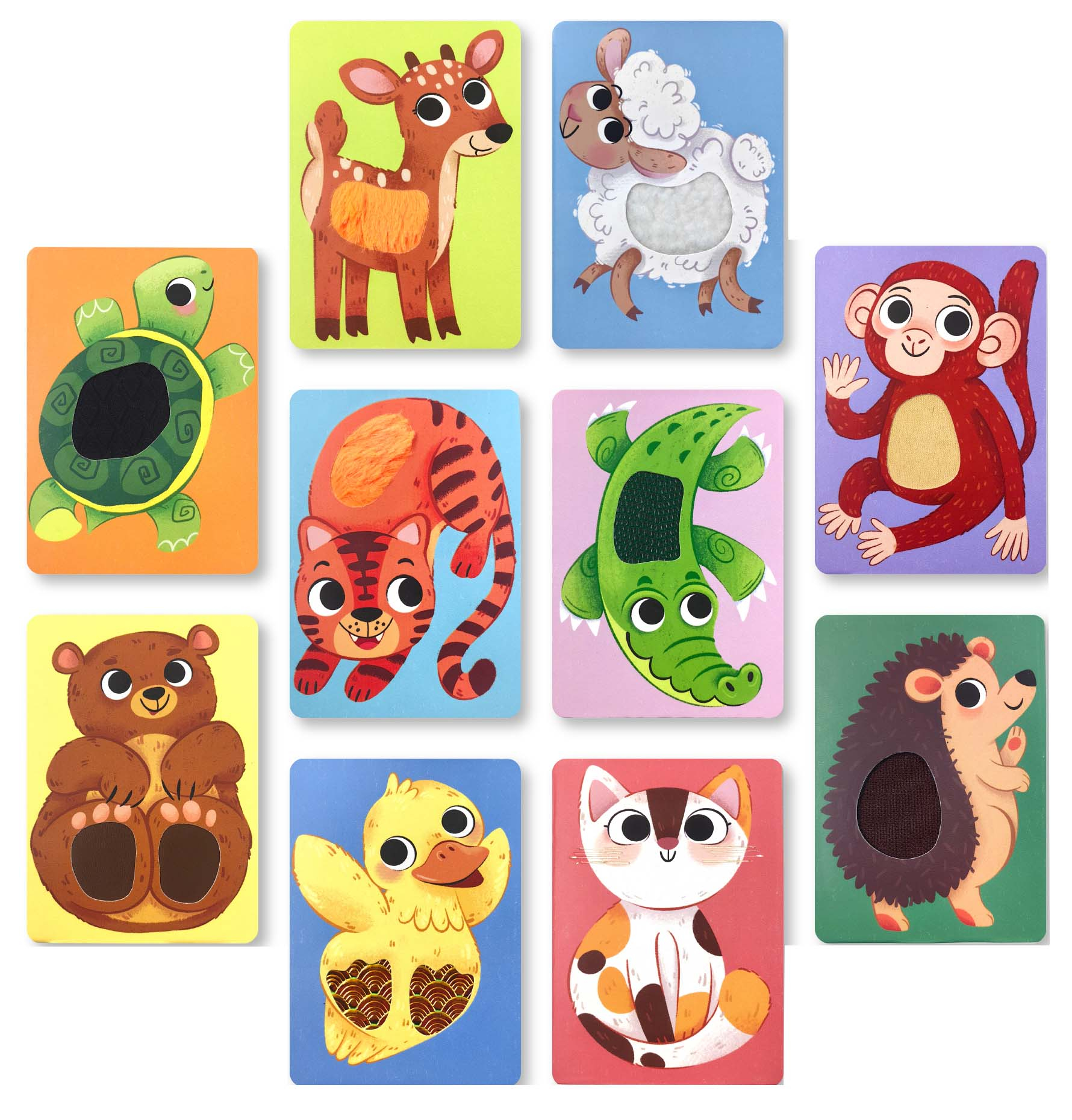 Набір карток із тактильними елементами Монтессорі Малюки тварин — це пізнавальна сенсорна гра для дітей від 12 місяців, яка поєднує знайомство зі світом тварин із розвитком дотикових відчуттів.