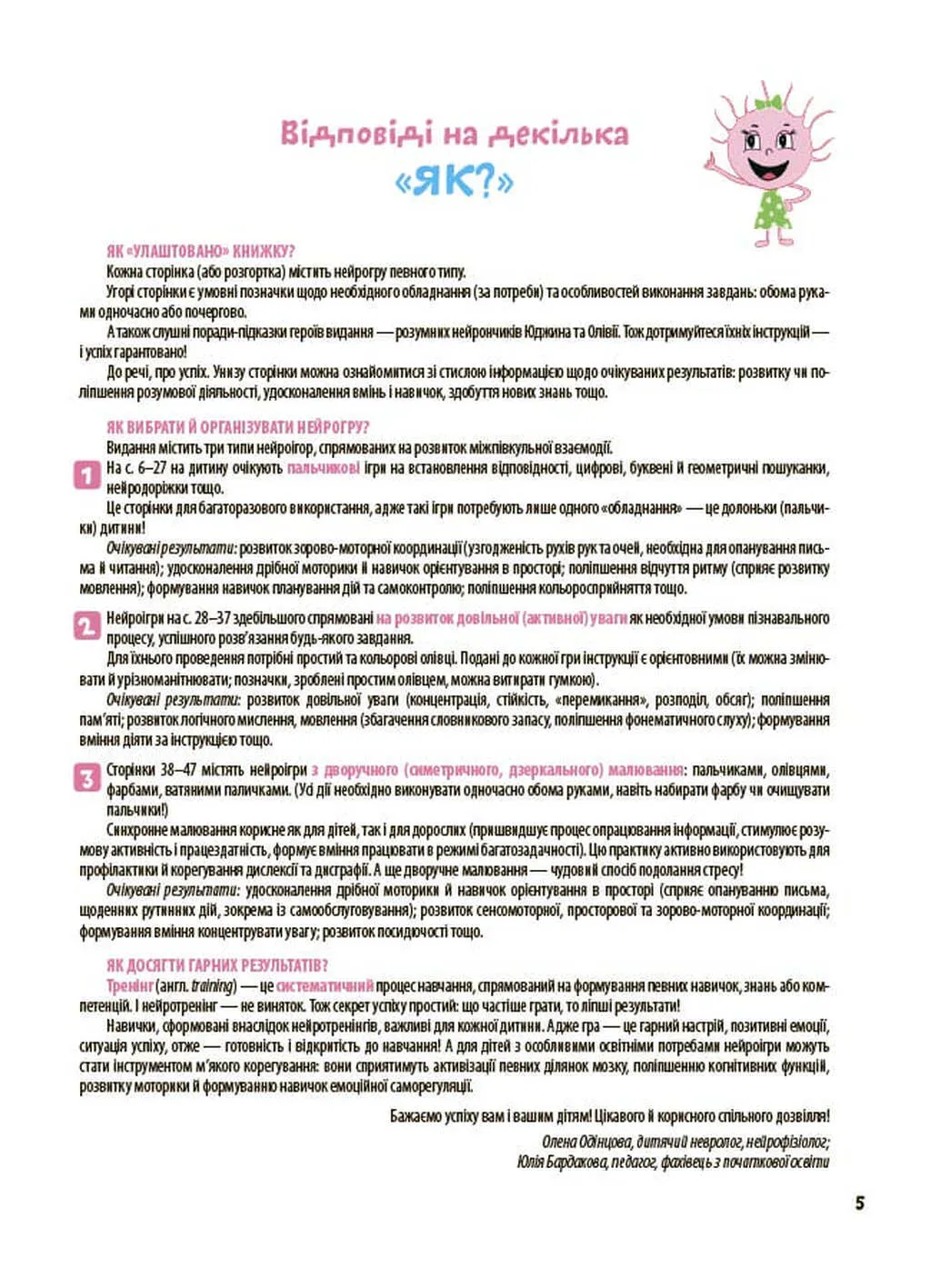 Нейроігри — це цікавий, простий та результативний спосіб інтелектуального розвитку дитини і підготовки до навчання. У книжці кожне завдання перетворюється на пригоду, що мотивує мислити, експериментувати та вдосконалюватися.