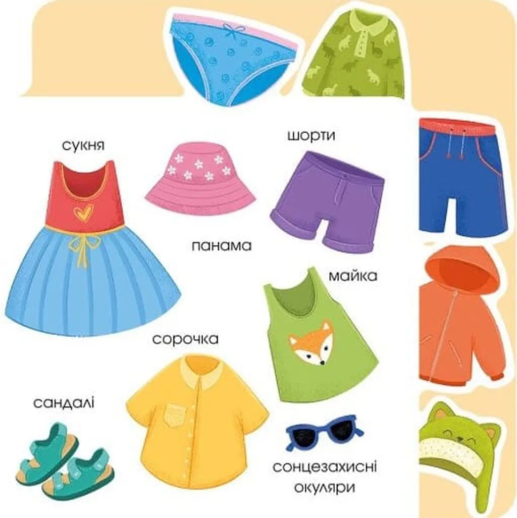Ця книжка стане чудовим вибором для першого знайомства з темою одягу, а також для щоденних сенсорних ігор, які підтримують розвиток дитини в природний та захопливий спосіб.