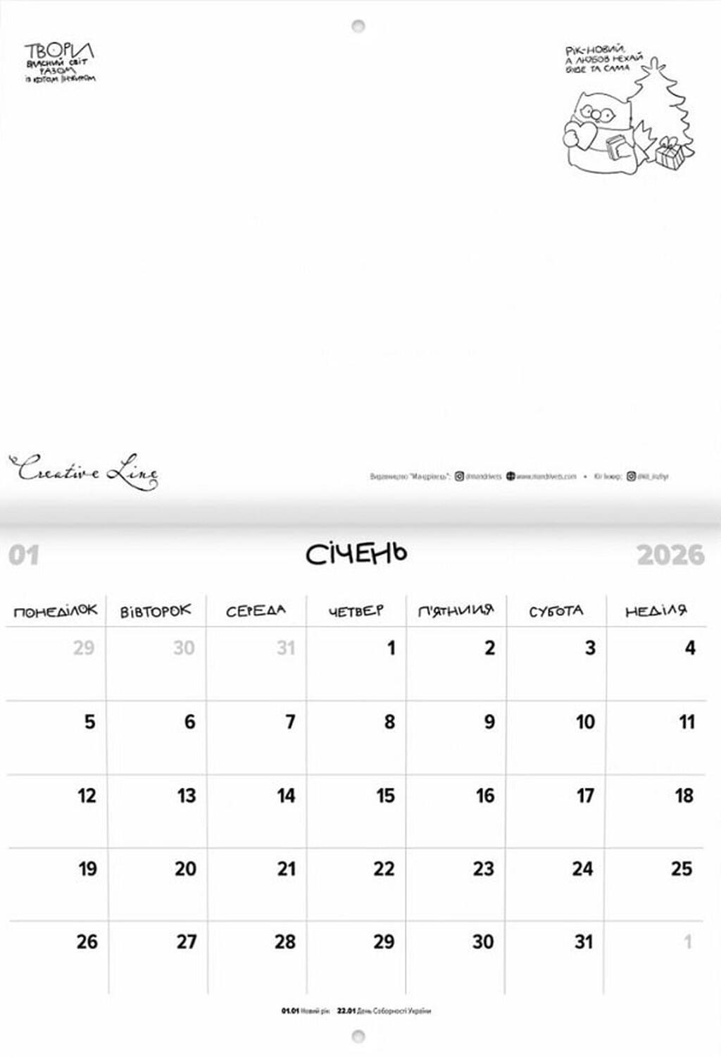 Календар кота Інжира на 2026 рік — це не просто звичайний календар, а справжній арт-об’єкт з відтінком патріотизму, гумору та натхнення.