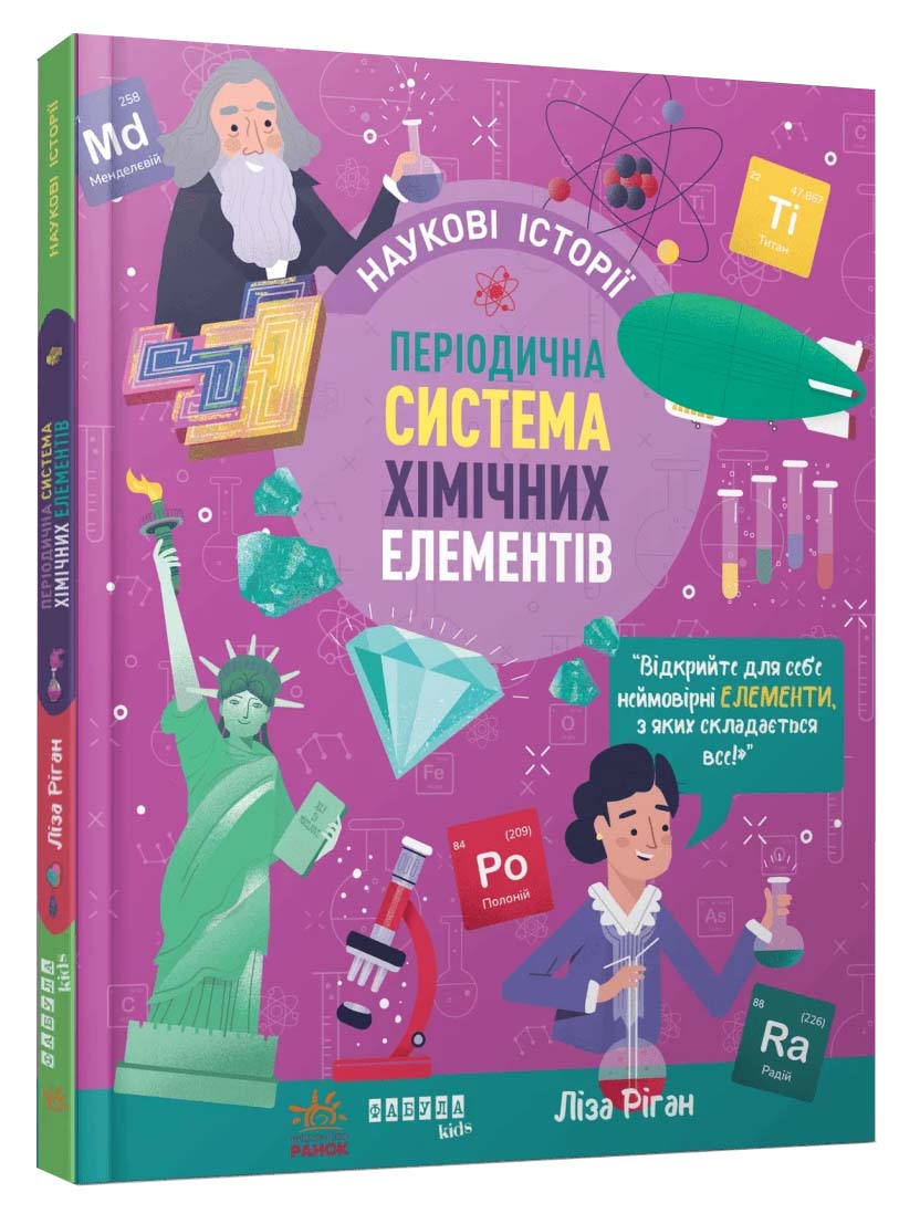 Періодична система хімічних елементів (Наукові історії) — це пізнавальна й яскрава книжка Лайзи Ріган, яка пояснює основи хімії просто, доступно й захопливо. Авторка створила понад 200 освітніх видань, і це — одне з найцікавіших.