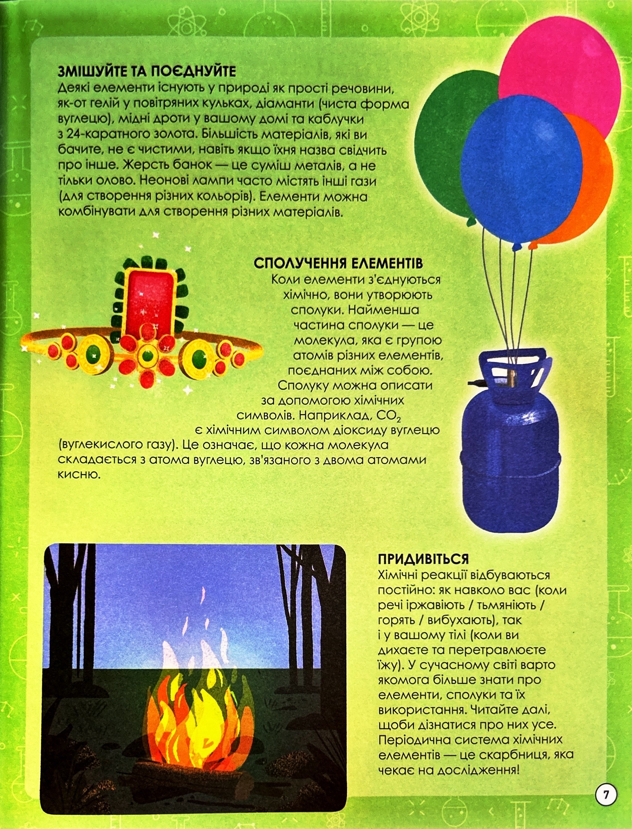 Видання ідеально підійде для дітей, які роблять перші кроки у світі природничих наук, а також для дорослих, що хочуть повторити базові знання або відкрити для себе хімію по-новому.