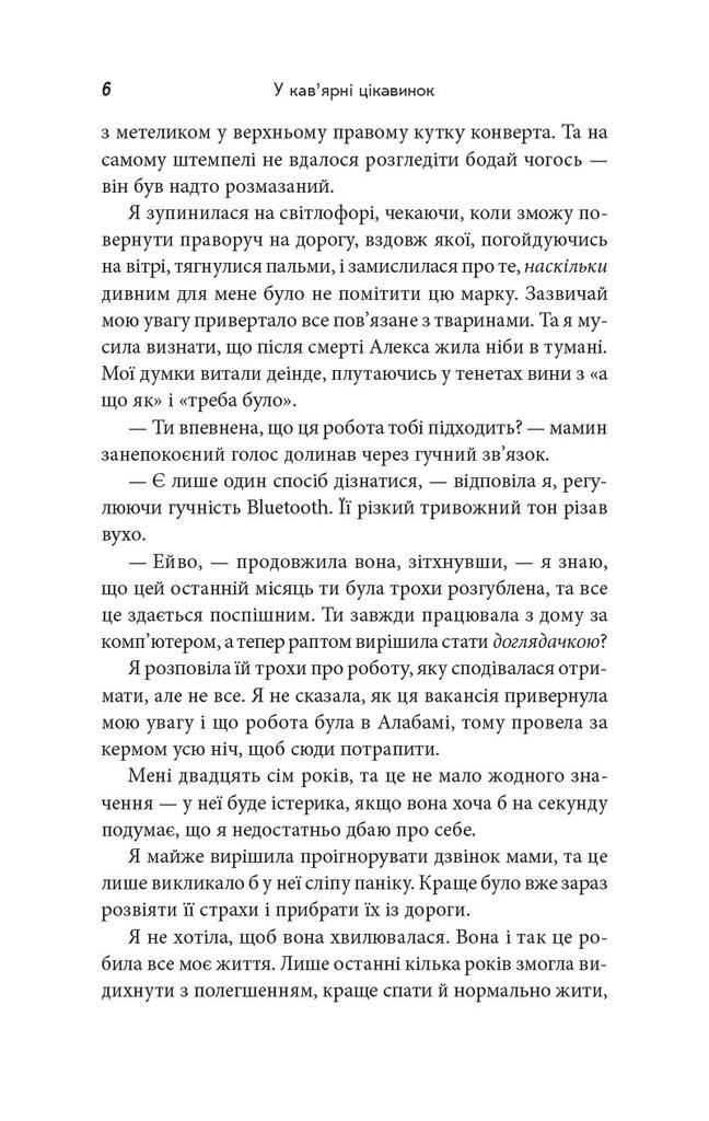 У кав’ярні цікавинок автора Гізер Веббер — це теплий, атмосферний роман із елементами магічного реалізму, який хочеться читати повільно, смакуючи кожен рядок так само, як горнятко улюбленого напою. Це історія про зцілення, прийняття себе та тихі дива, що приходять у життя, коли ми нарешті дозволяємо їм це зробити.