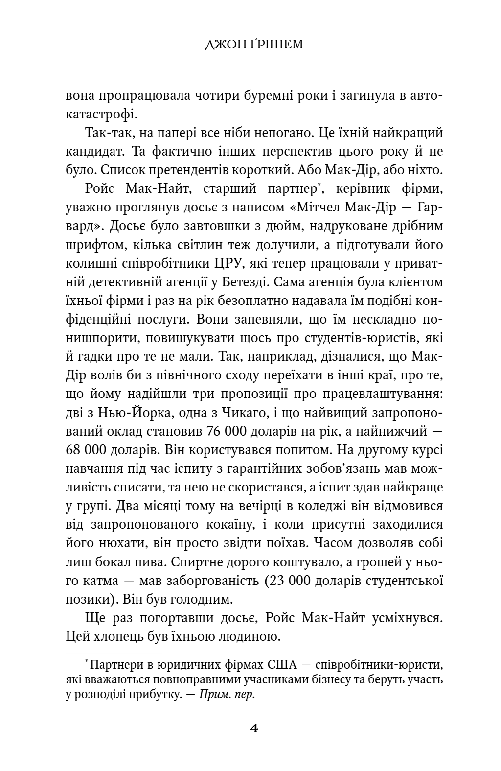 Фірма — це блискучий трилер про владу, страх, вибір і боротьбу за свободу. Книга не відпускає до останньої сторінки та дарує справжню насолоду всім прихильникам напруги й драматичних сюжетів.