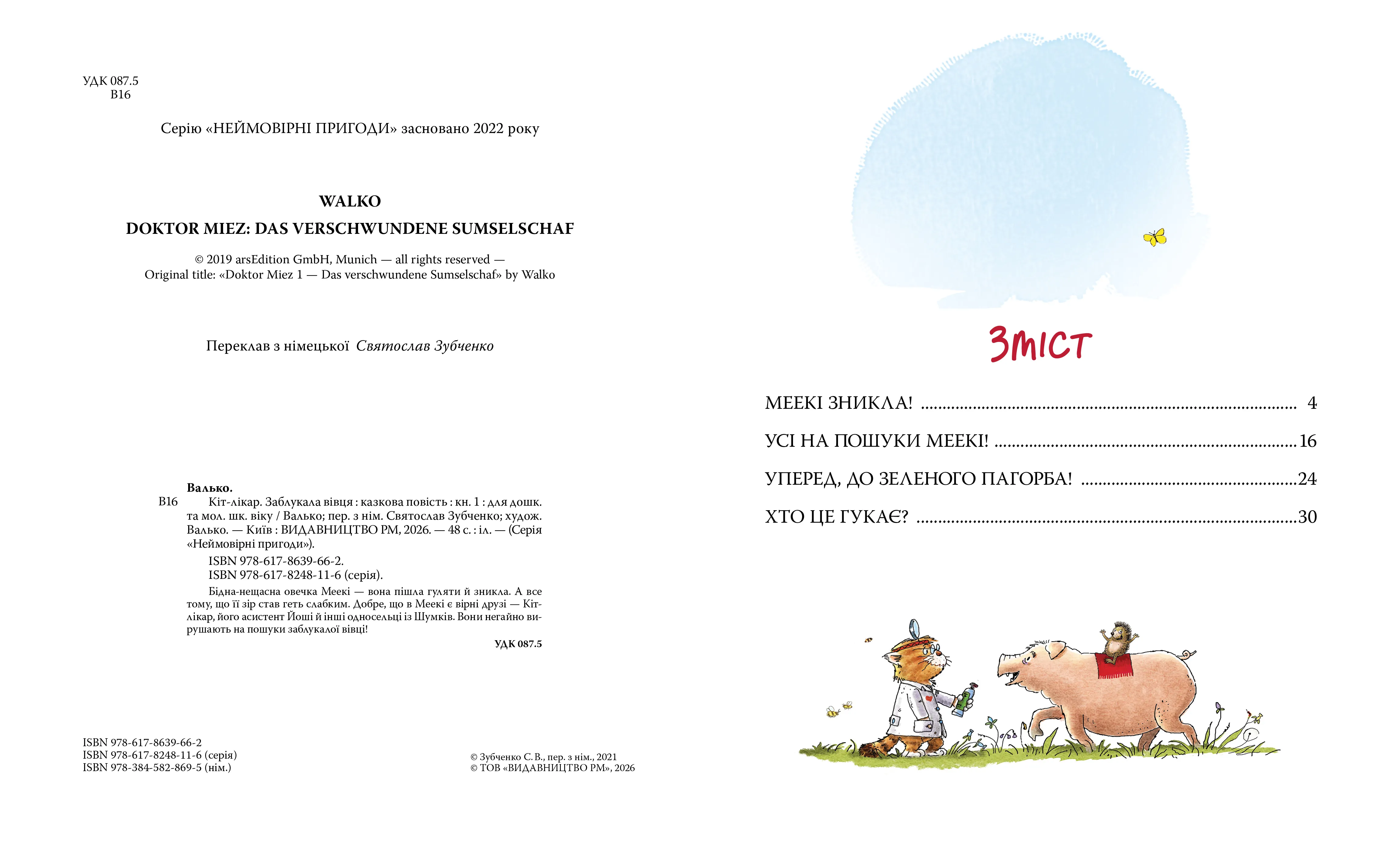 Книга Кіт-лікар. Заблукала вівця авторства Валько — це зворушлива дитяча історія з популярного циклу про доброго та кмітливого Кота-лікаря. Кожна книжка серії є окремою завершеною пригодою, тому читати їх можна в будь-якій послідовності.