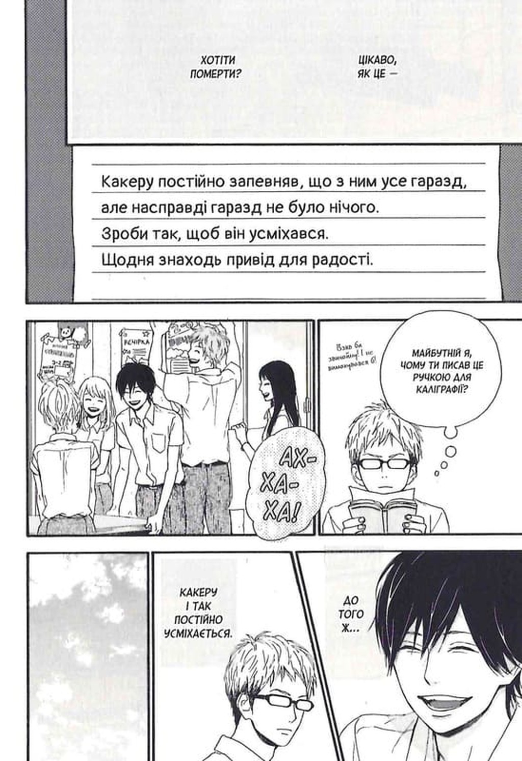 Коли листи з майбутнього отримують Хаґіта, Такако й Адзуса, вони вирішують діяти. Їхня мета — зробити життя Какеру світлішим: подарувати йому сміх, підтримку та тепло, яких йому так бракувало. Друзі захищають його від знущань, допомагають здійснювати маленькі мрії й поступово зазирають у найглибші куточки його внутрішнього світу.