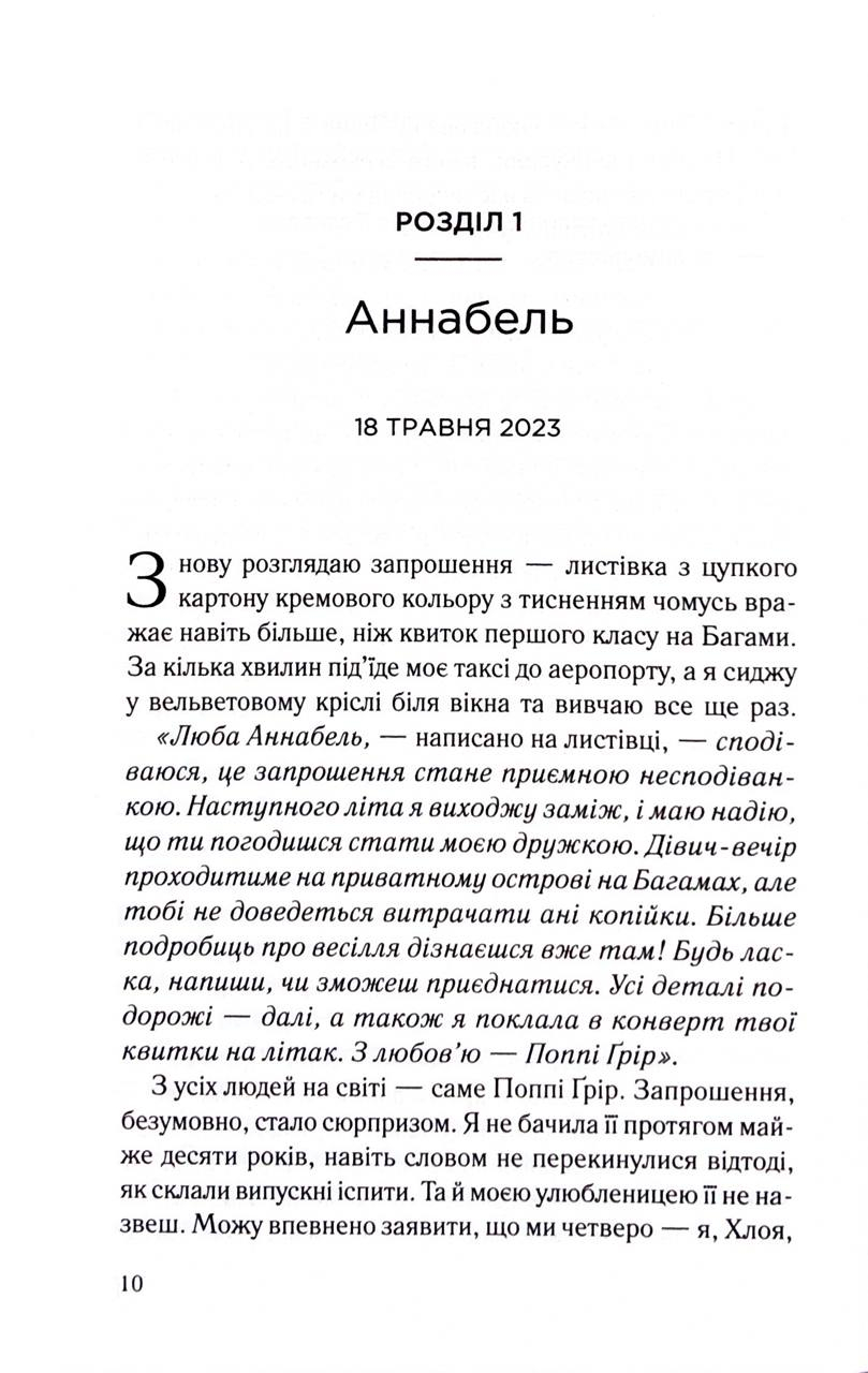 Аннабель, Естер, Таня і Хлоя — найкращі подруги з дитинства, чиї зв'язки здаються непорушними. Одного дня дівчата отримують несподіване й неймовірно щедре запрошення від давньої приятельки, успішної та заможної Поппі Ґрір. Вона пропонує їм триденний розкішний дівич-вечір із коктейлями на приватних Багамських островах.