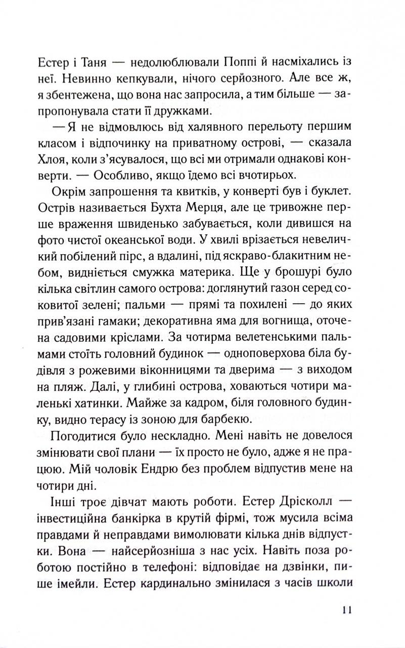 Вона це почала — це гостросюжетний психологічний трилер від Шіан Ґілберт, який змусить вас засумніватися у щирості навіть найближчих друзів. Історія про те, як старі образи та приховані таємниці можуть випливти на поверхню в найбільш невідповідний момент, перетворюючи райську відпустку на справжнє жахіття.