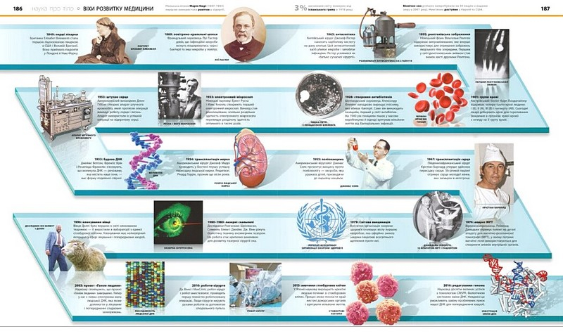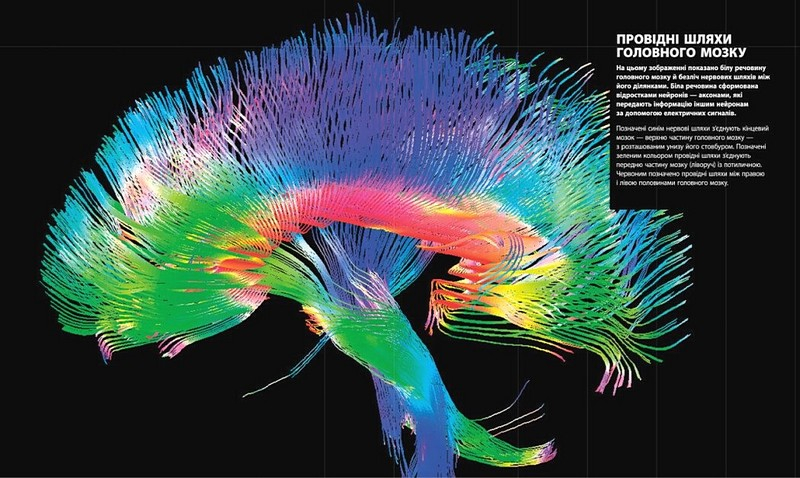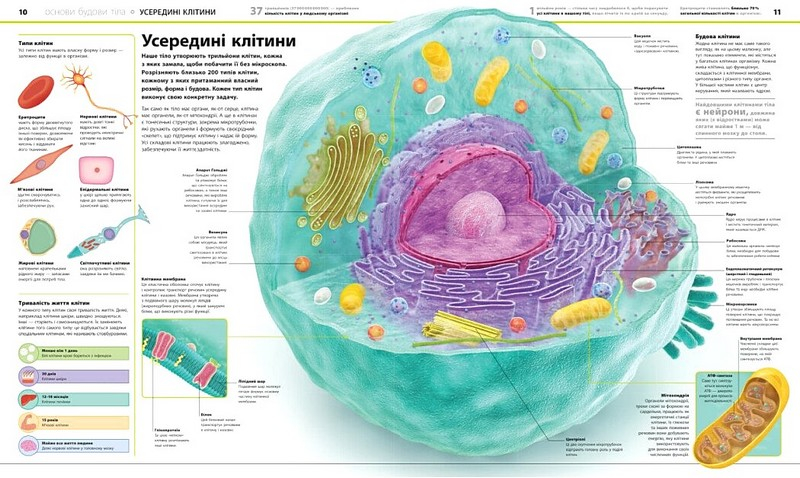 Посібник містить детальні 3D-зображення кісток, м'язів, зубів, органів та кровоносних судин. Окрему увагу приділено мікроскопічним внутрішнім структурам, таким як нейрони, стовбурові клітини та клубочки. Книга у простій і цікавій формі дає відповіді на безліч дитячих питань про людське тіло й заохочує здобувати нові знання про те, як ми влаштовані.