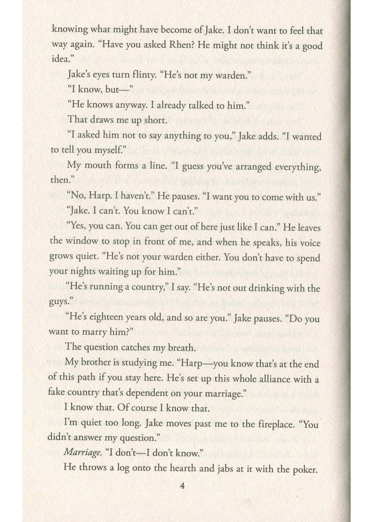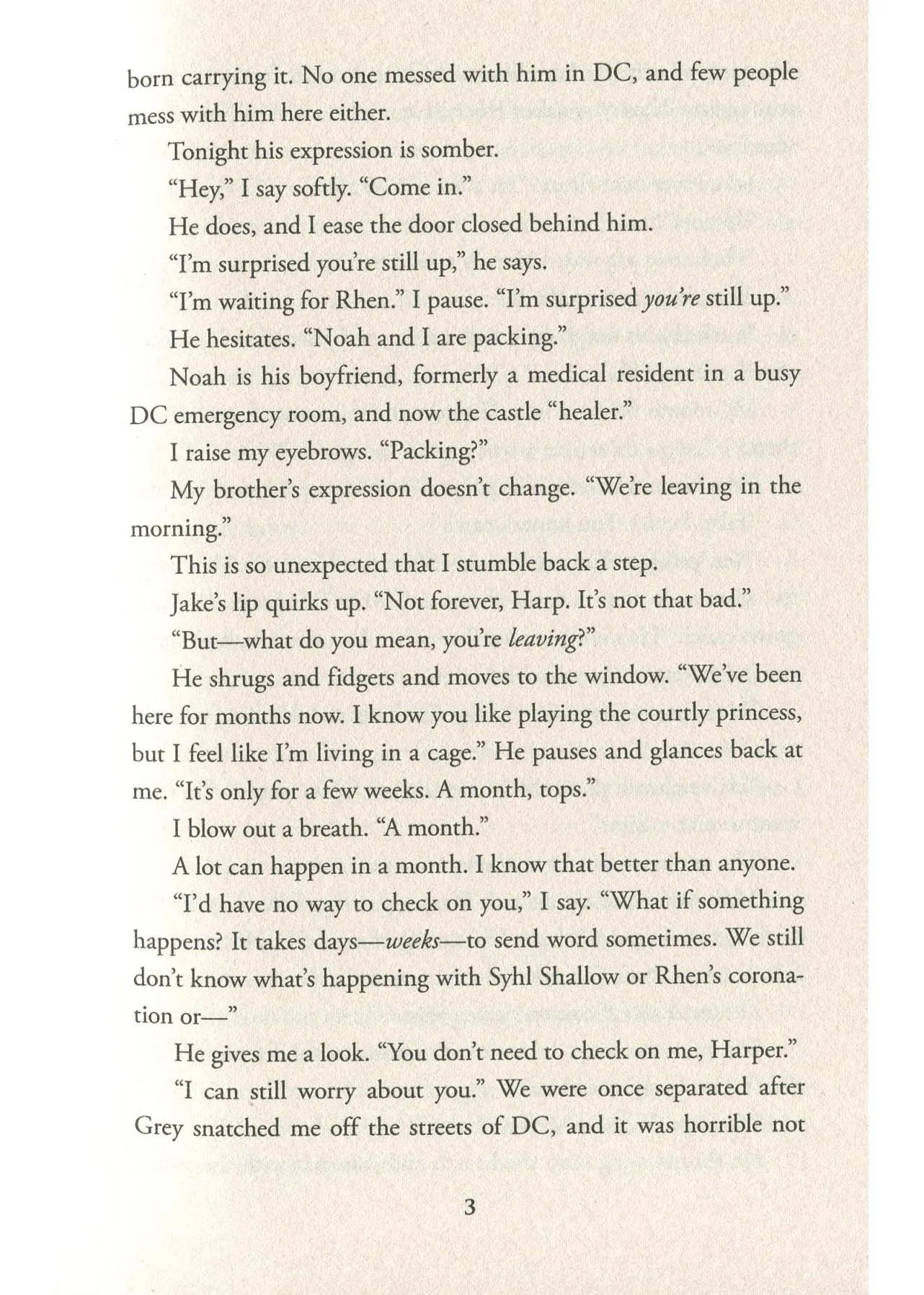 Цей роман заглиблює нас у наслідки зробленого вибору. Поки королівством ширяться чутки, що Гарпер — самозванка, а справжній спадкоємець трону переховується, капітан Грей опиняється в центрі політичного шторму. Це історія про те, що стається після «довго і щасливо», коли на горизонті з’являється нова загроза.