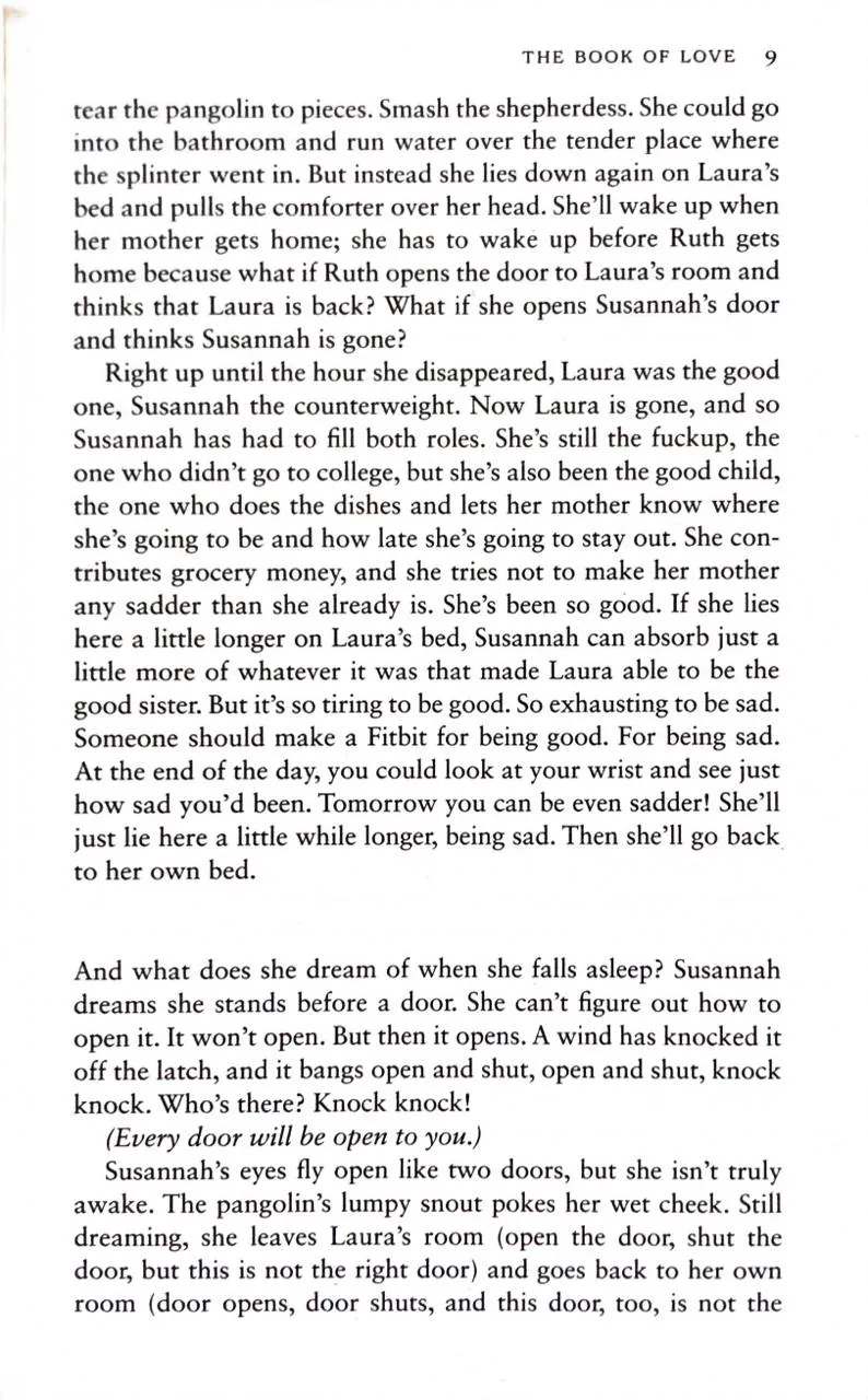«Книга кохання» — це роман, який потрібно читати повільно, насолоджуючись кожним образом. Це історія про те, що кохання — це теж свого роду магія, здатна змінювати закони всесвіту.
