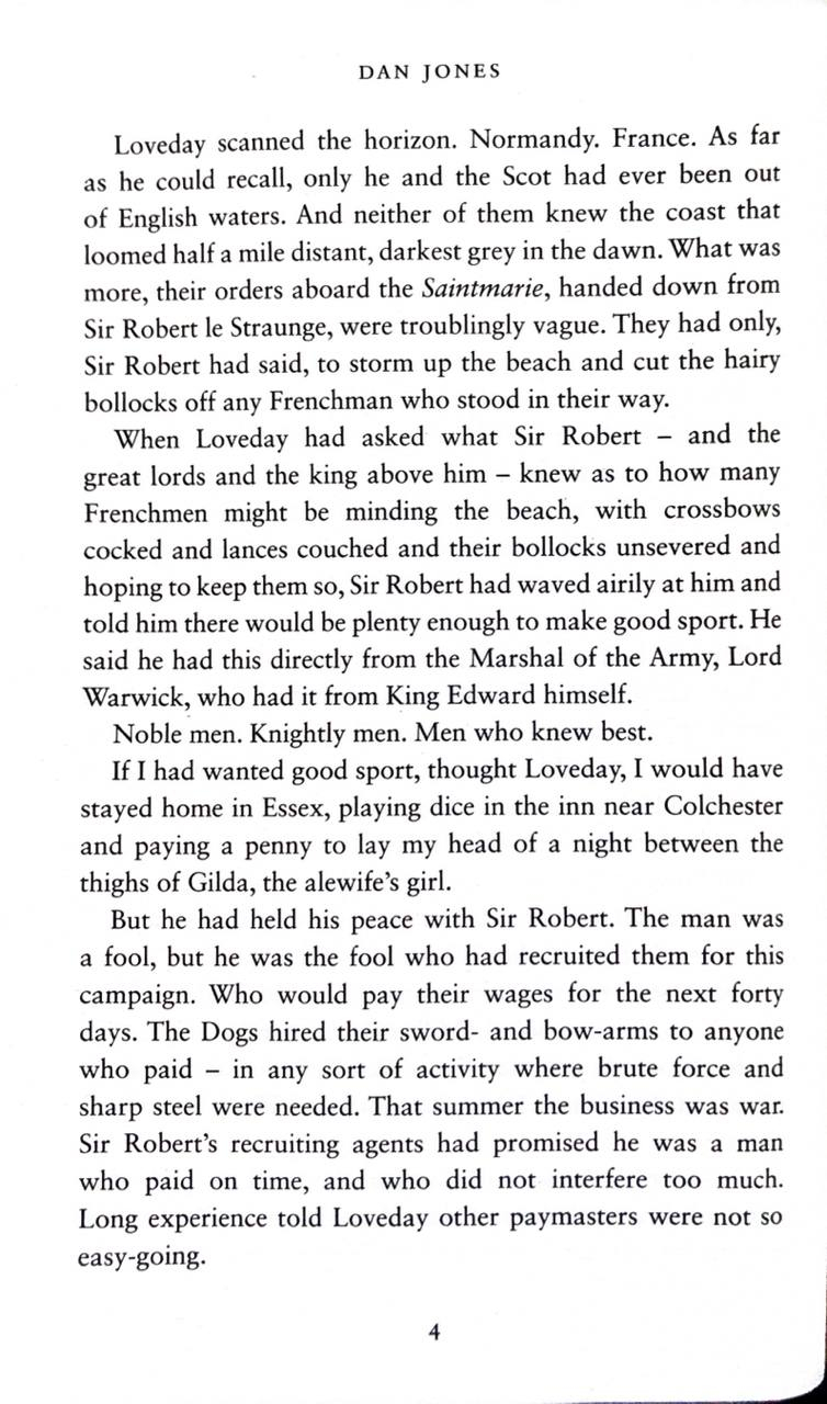 The first instalment in a new Hundred Years War trilogy, following a tight-knit group of soldiers fighting the 1346 Crécy campaign in medieval France. From Sunday Times bestselling historian Dan Jones.'A new champion has entered the front line of historical fiction to stand shoulder to shoulder with Bernard Cornwell' JANE JOHNSONSome men fight for glory. Others fight for coin. The Essex Dogs? They fight for each other.