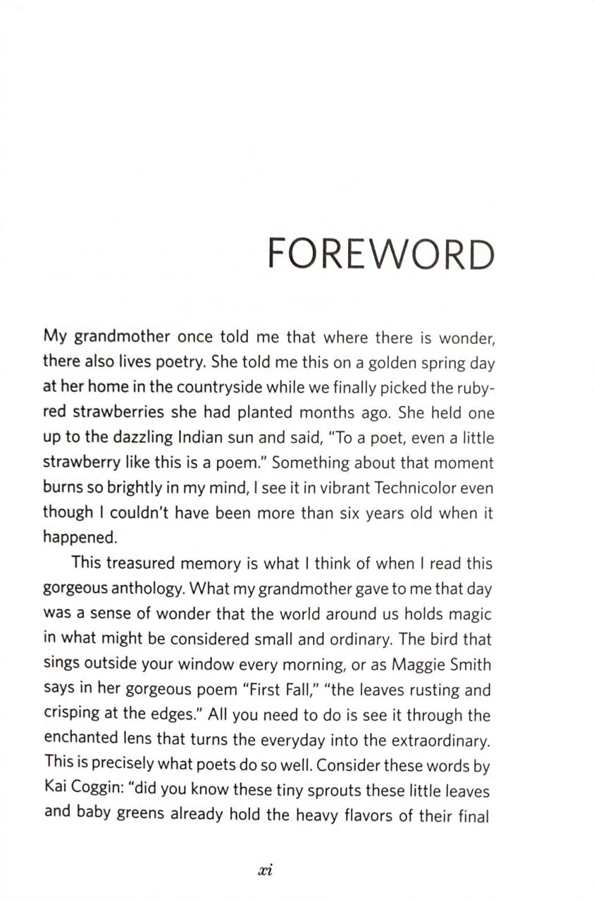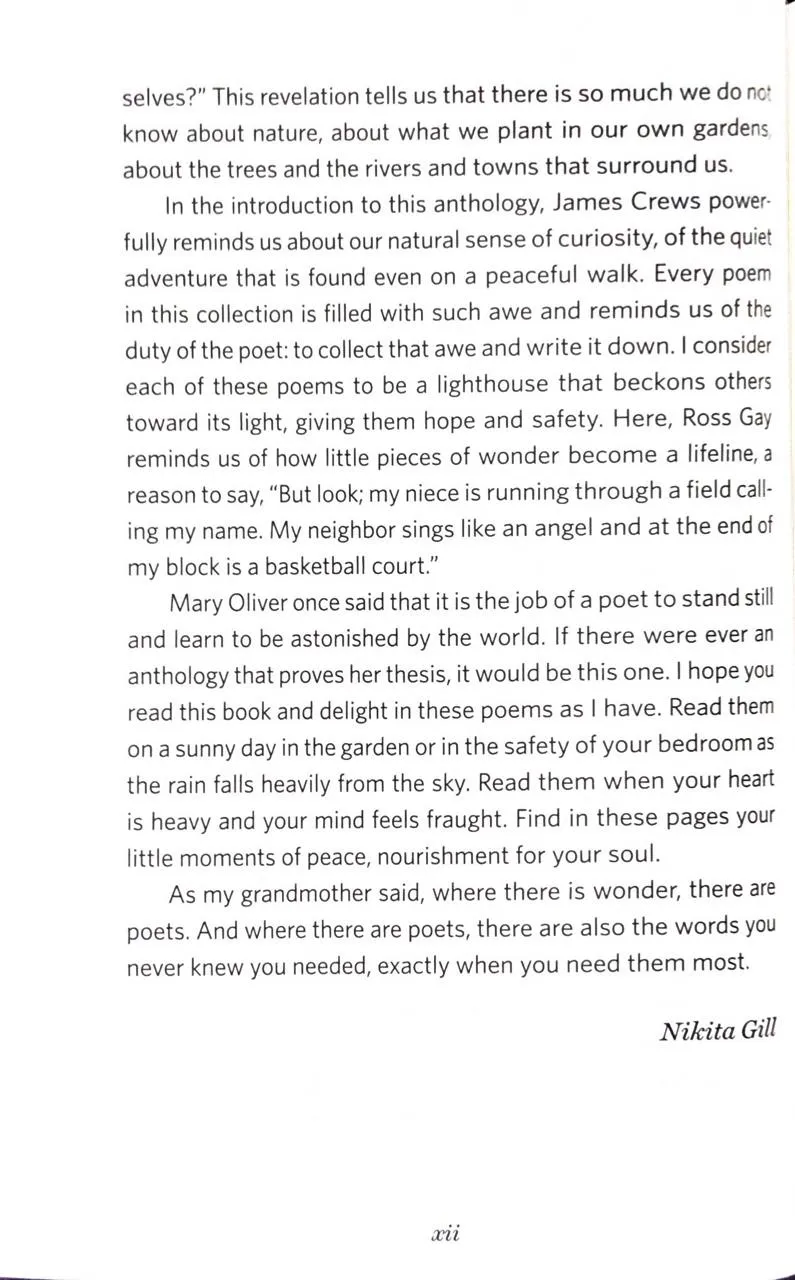 The anthology features a foreword by Nikita Gill and includes works from a diverse range of voices, including Joy Harjo, Ross Gay, and Ted Kooser, alongside emerging poets.